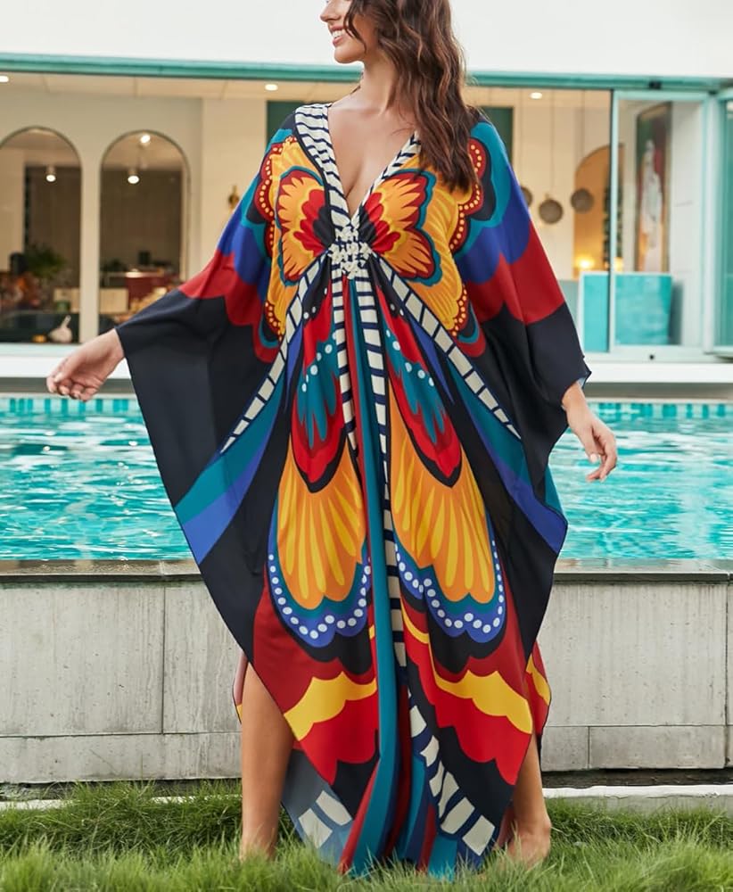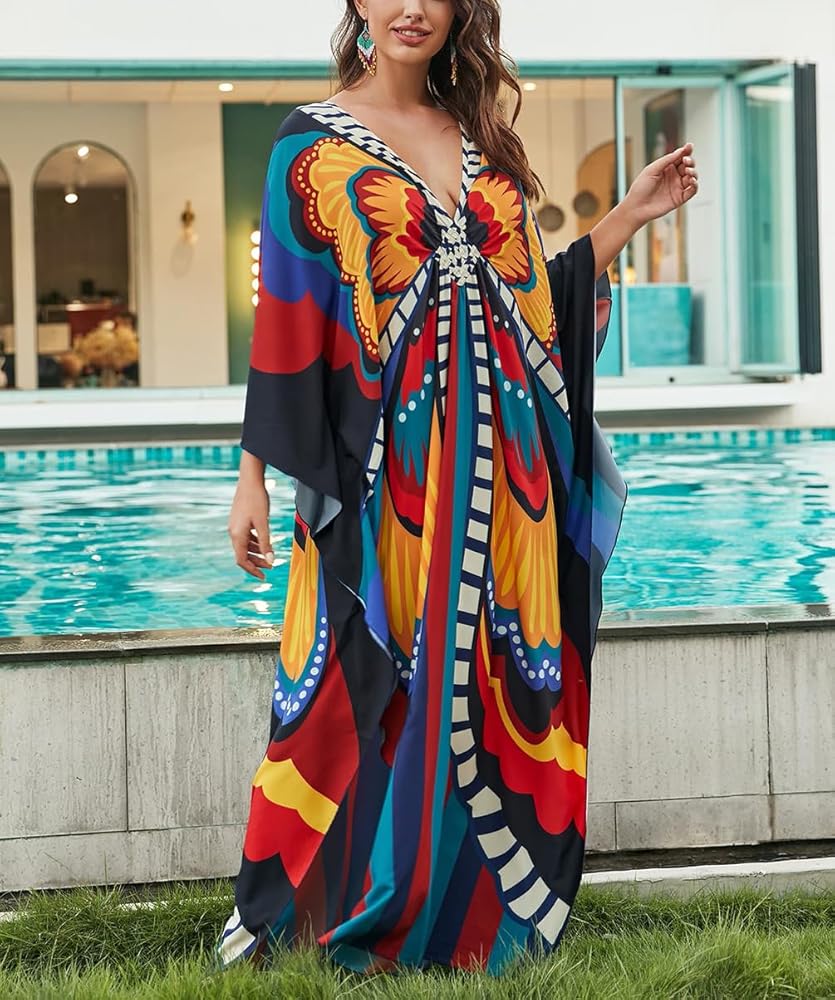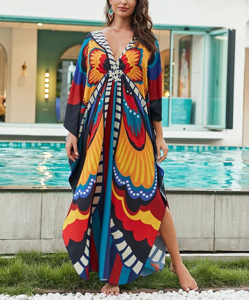 ♥These kaftans are made from 100% Polyester, semi-sheer lightweight and soft comfortable fabric, you'll feel cool and comfortable all day long.
