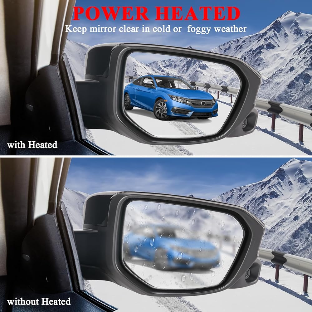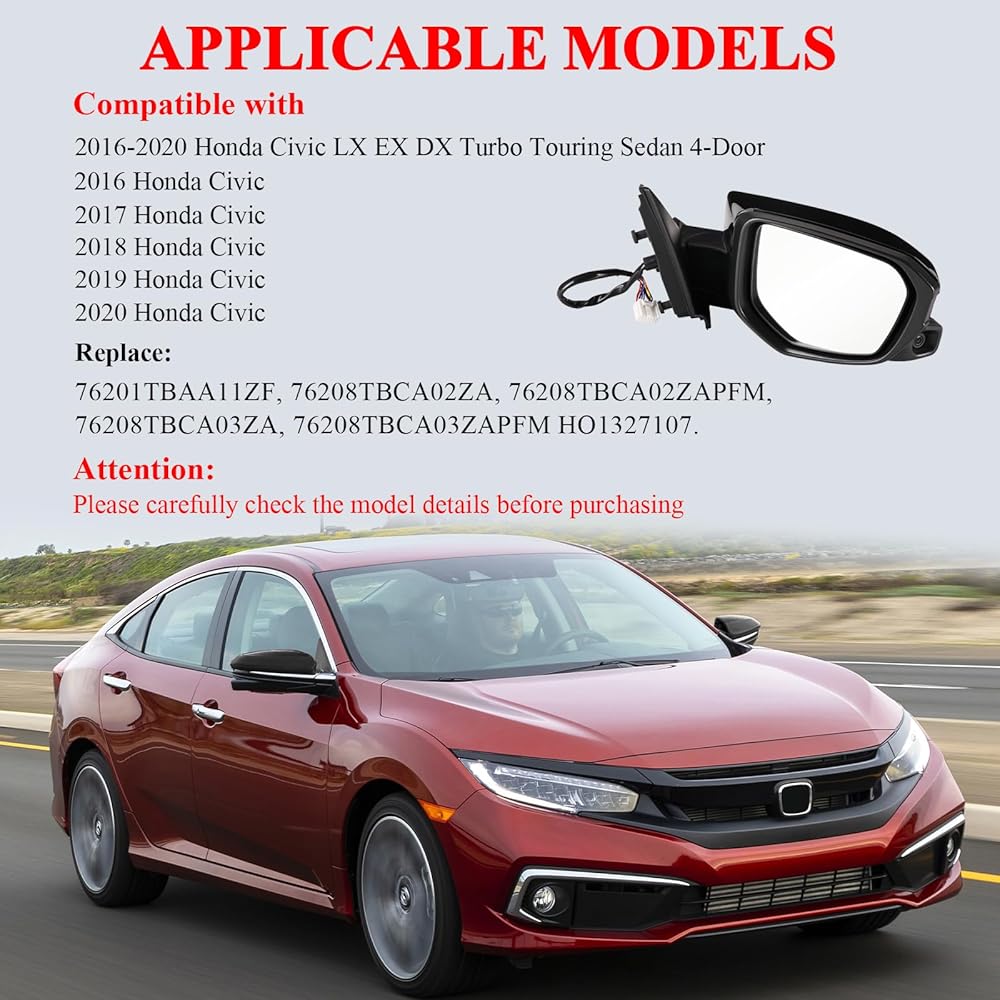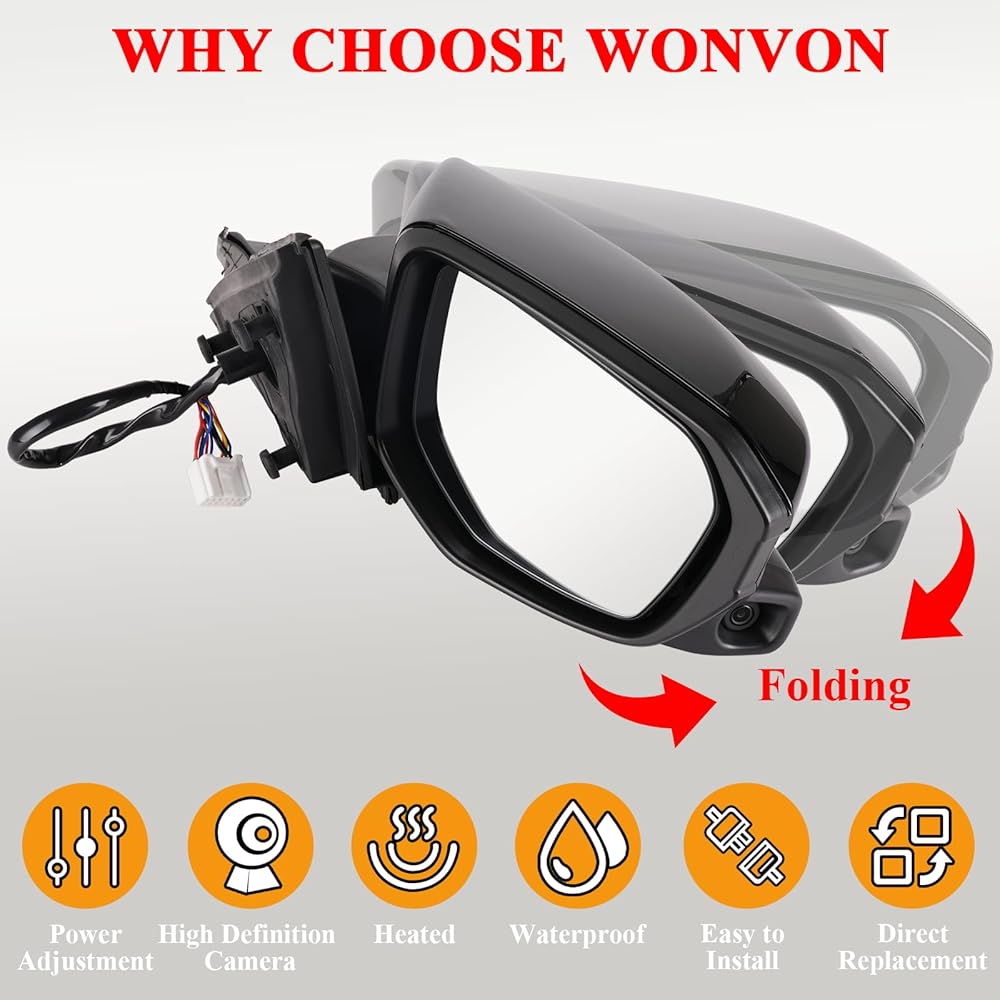 مرآة جانبية للركاب الأيمن من ونفون تناسب 2016 2017 2018 2019 2020 هوندا سيفيك، مرايا مزودة بالطاقة | مسخن | الكاميرا | استبدال الطي اليدوي HO1321284، 76208TBCA03ZA-PFM (11 دبابيس)