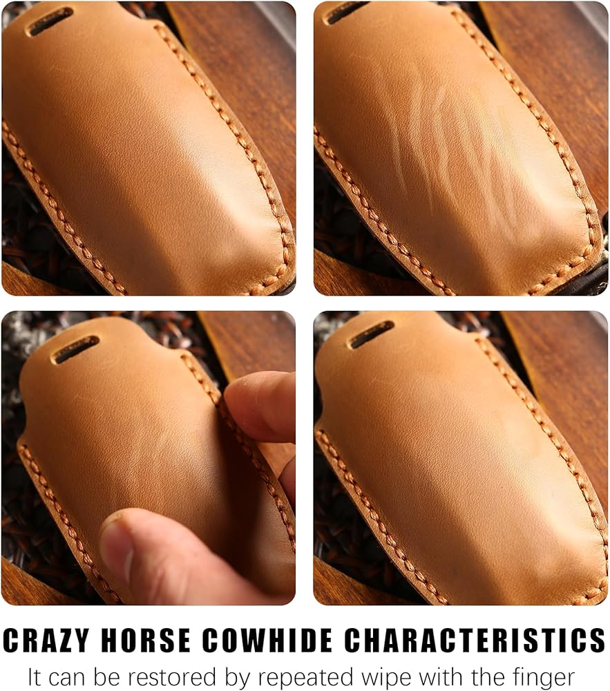 هذه الحافظة مصنوعة من جلد البقر الأصلي بنسبة 100%. يأتي مع مكيف جلدي مجانًا يمكنك استخدامه بمجرد تمديد الغطاء فوق سلسلة المفاتيح.