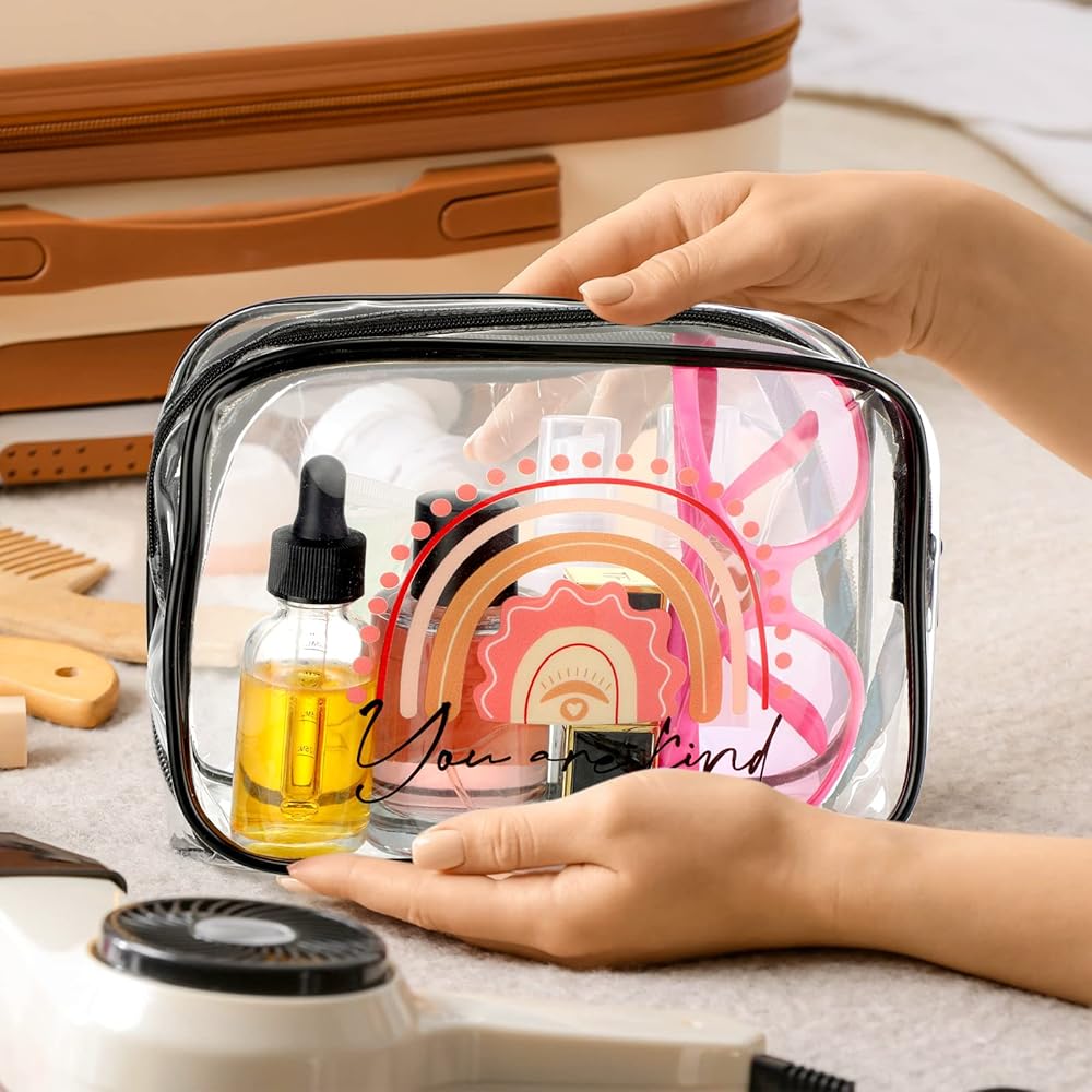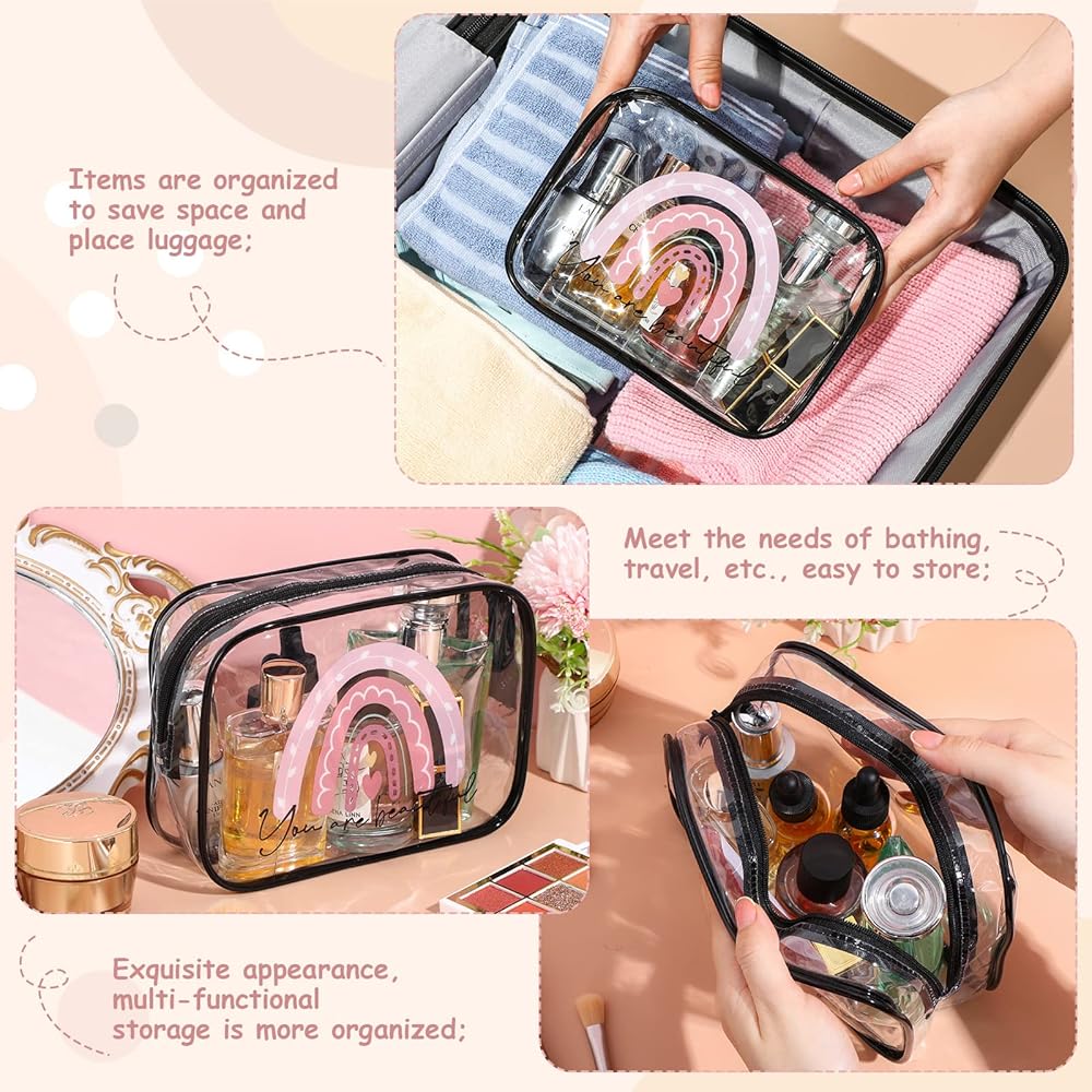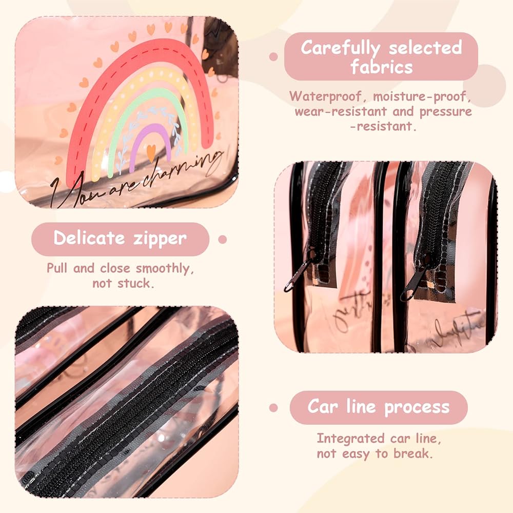 Rainbow transparent makeup bag is beautiful, classical and useful, you can use it to contain stuffs to make your place clean, and you can redecorate it, such as you can stick up some stickers you like, to make your own cosmetic bag, which can show your personality.