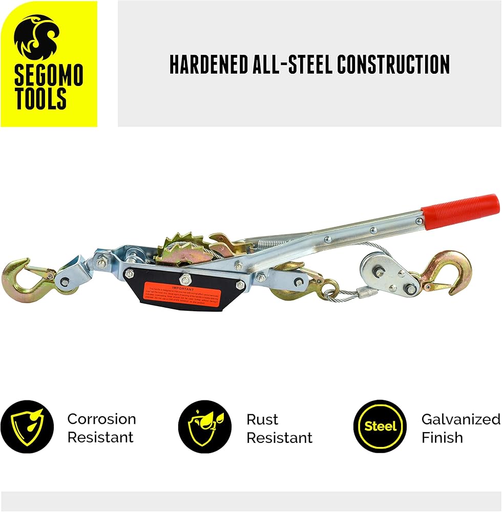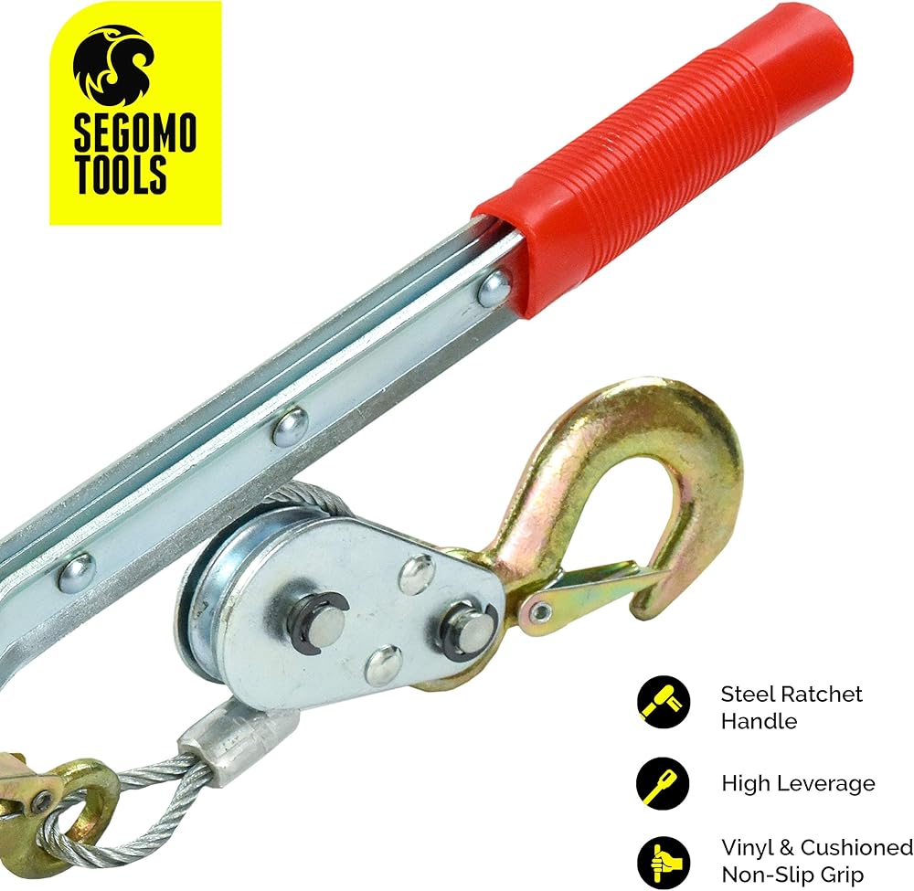 [ Upgraded Cable Steel Over Previous Version ] This hand operated winch is used to pull objects. The come along tool features dual gears and double locking pawl that distributes even pulling force allowing you to use only one hand while pulling heavy loads.
