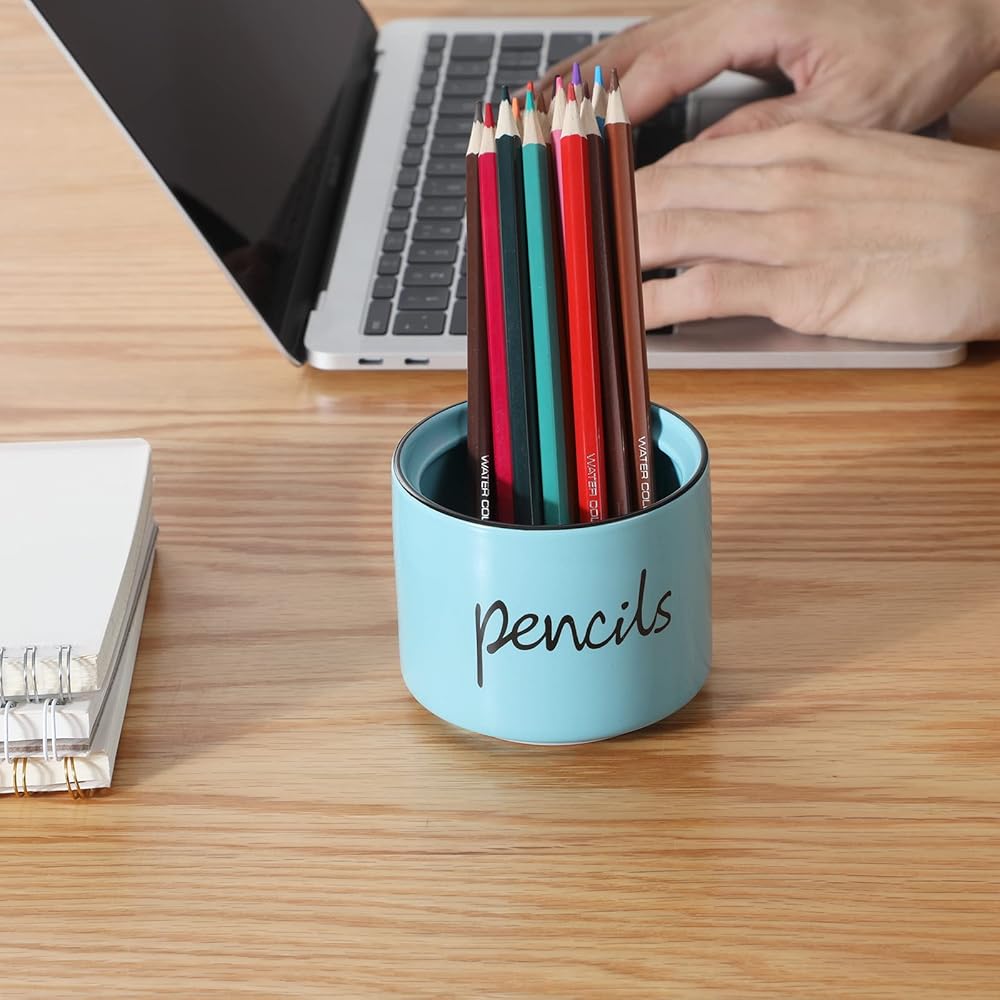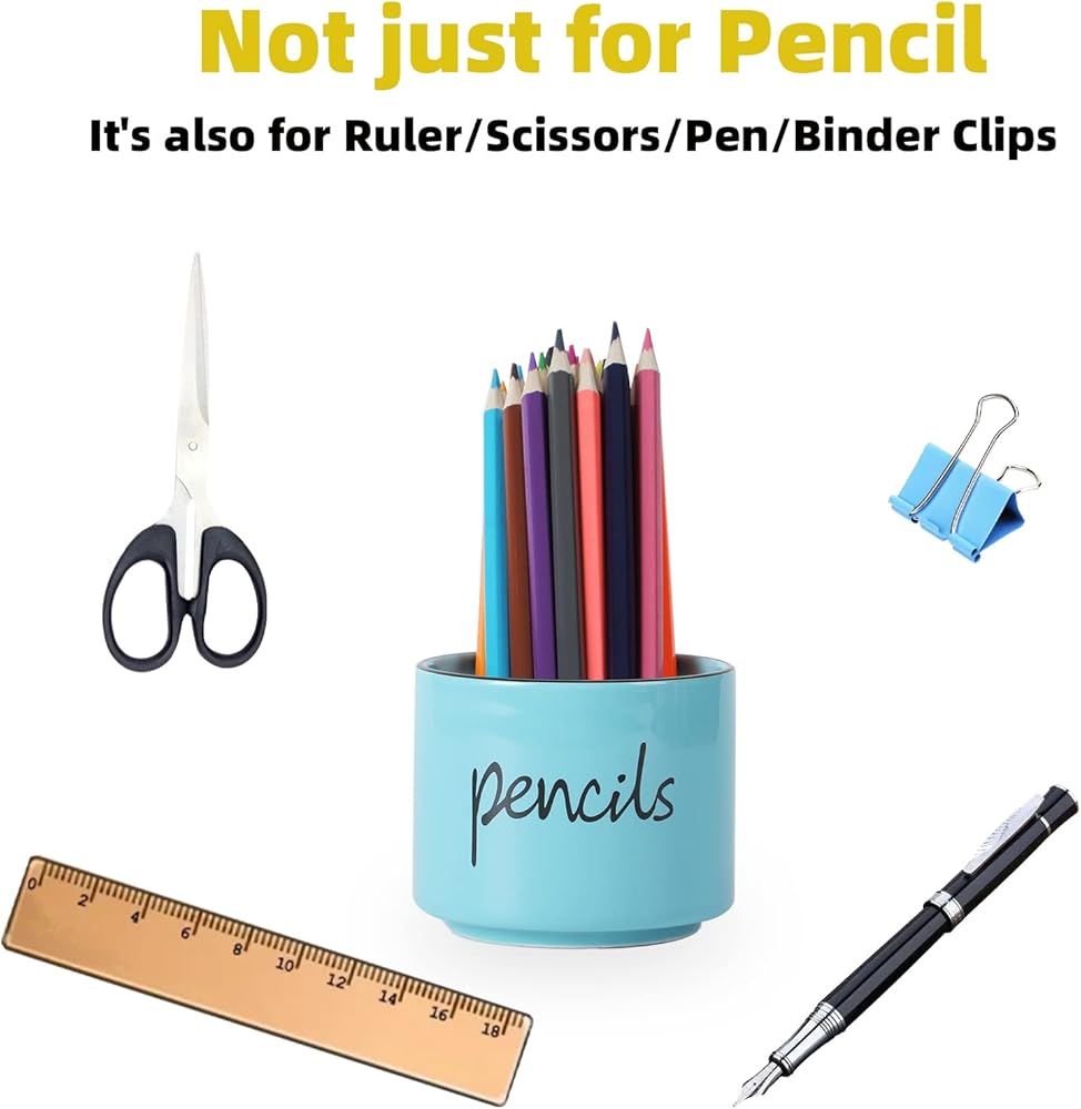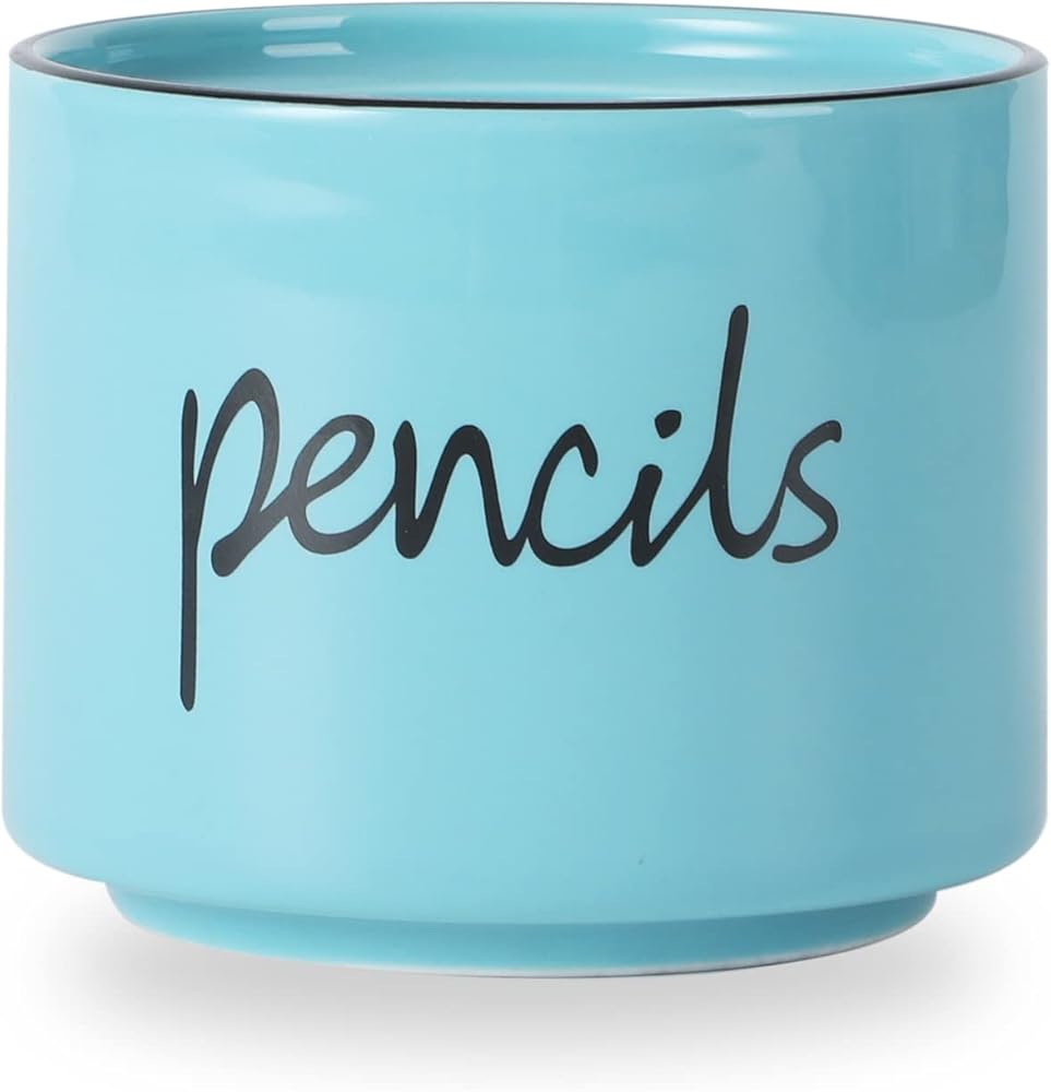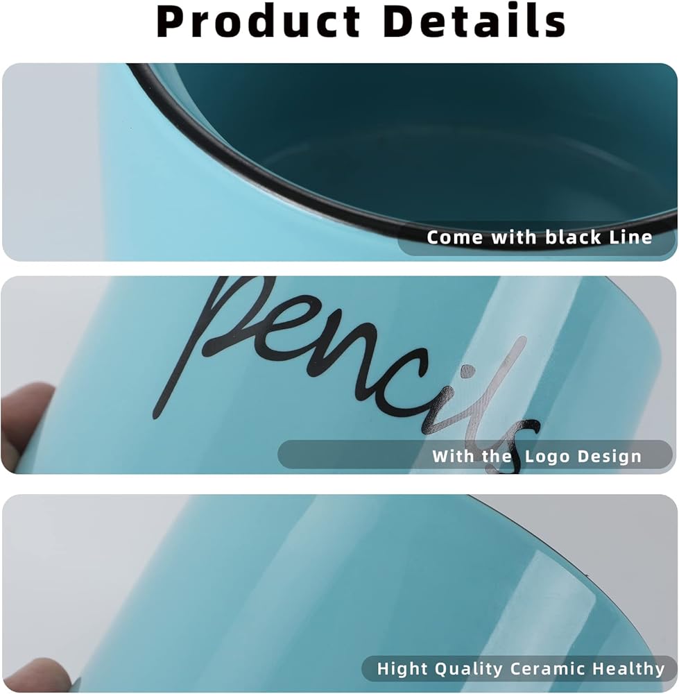حامل أقلام رصاص للمكتب، حامل أكواب أقلام رصاص من السيراميك، منظم مكتب أكواب أقلام الرصاص، منظم أقلام ديكور مكتب (فيروزي)