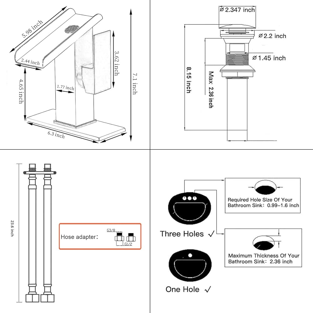 【تصريف حوض الحمام】 يتضمن فتحة تصريف قياسية 1 3/4 بوصة: تناسب قطر فتحة الحوض من 1.61 بوصة إلى 1.97 بوصة. زر الضغط المحمل بنابض لا يتطلب قضيب رفع. ما عليك سوى دفع غطاء الصرف لأسفل لإغلاقه وإغلاقه. ، ادفع مرة أخرى لفتح وتصريف المياه. (لا يناسب حوض الفائض)