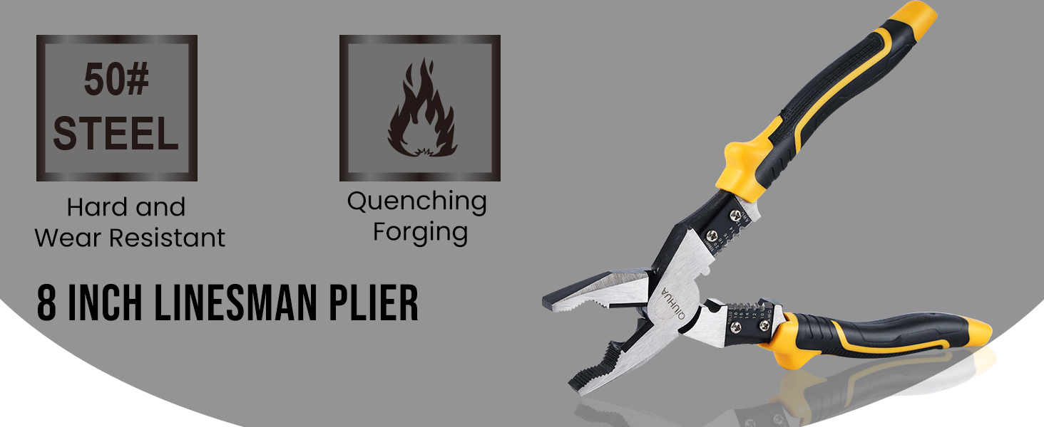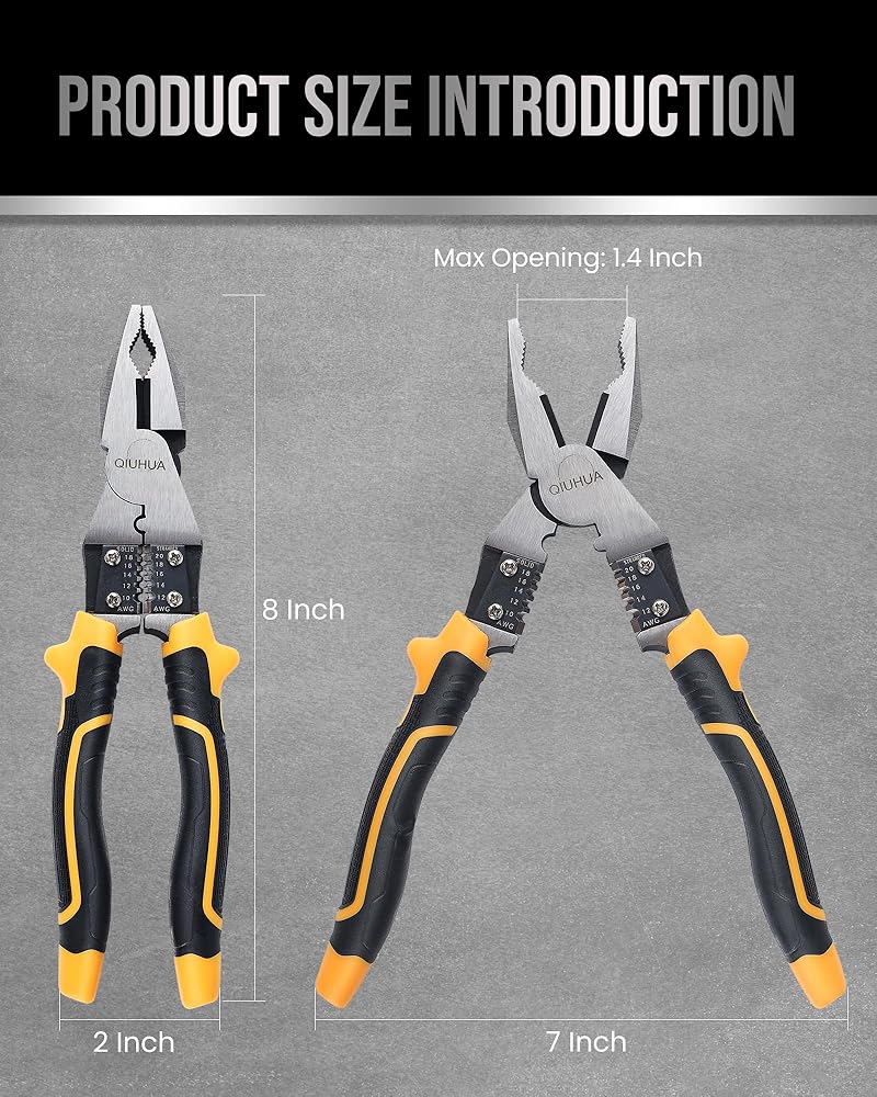 كماشة مساعد قياس 8 بوصات، 50 فولاذ، مصقولة ومعالج بالحرارة في كل مكان، مع فتحة قصوى تبلغ 1.4 بوصة وشفرات فك حادة للقطع السريع.