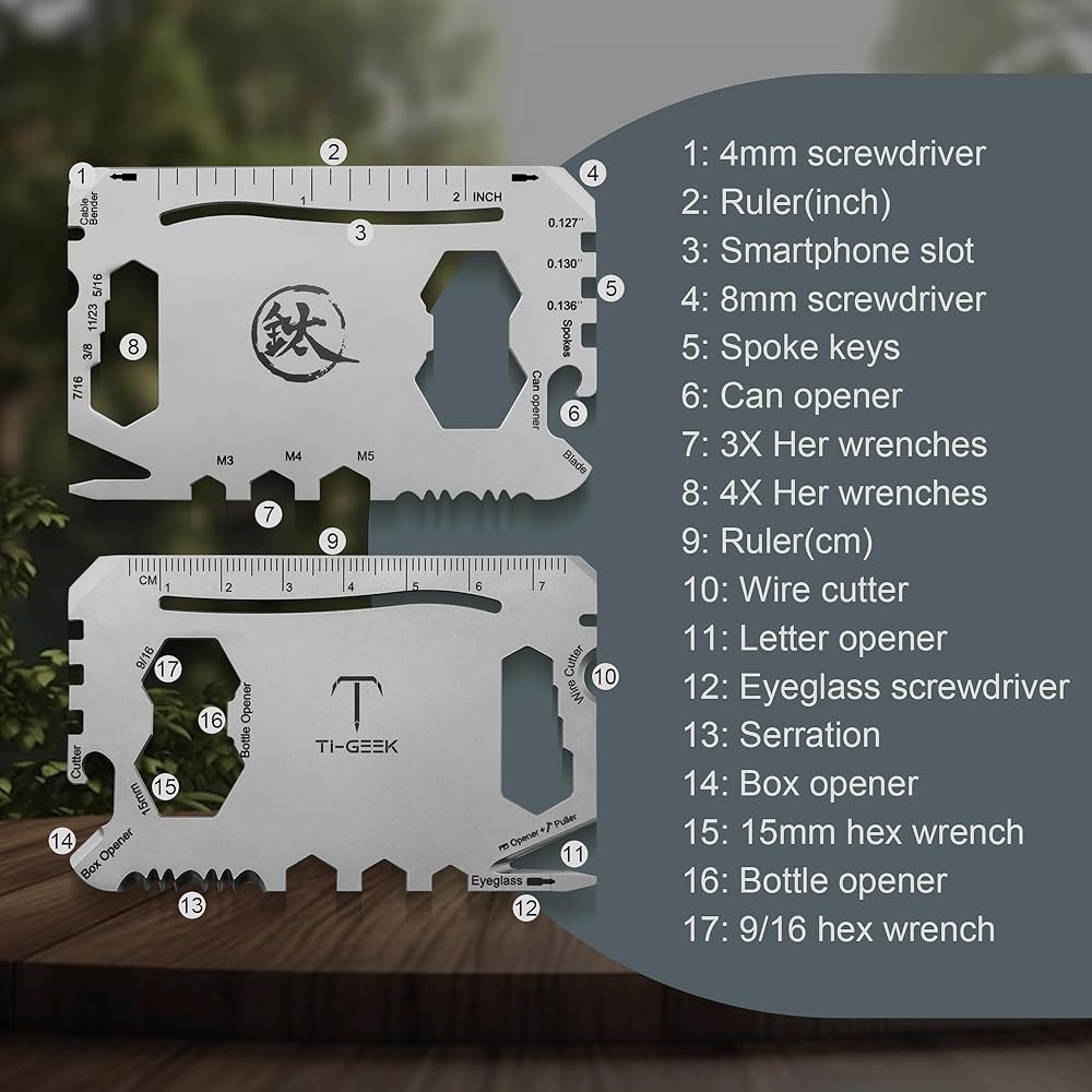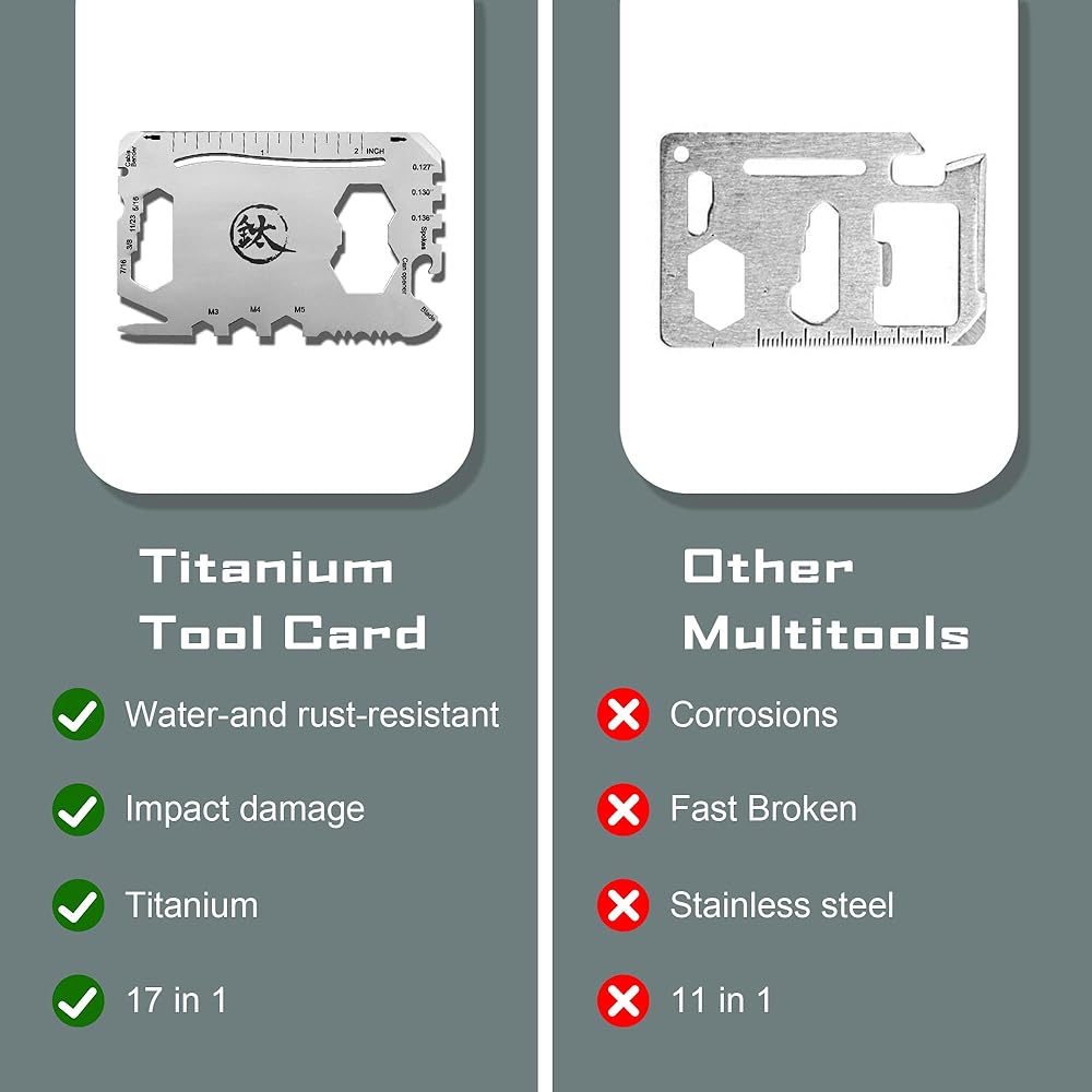 【جودة مضمونة】إن أداتنا المتعددة المصنوعة من التيتانيوم 13 في 1 هي الهدية المثالية للرجال المغامرين. مع ضماننا الخالي من المخاطر بنسبة 100%، يمكنك استبدال المنتج أو استرداد أموالك بالكامل دون طرح أي أسئلة! لكن ثق بنا، سوف تعشق تمامًا بطاقة أدوات محفظة سكين بطاقة الائتمان الخاصة بنا - إنها الهدية المثالية لأي شخص!