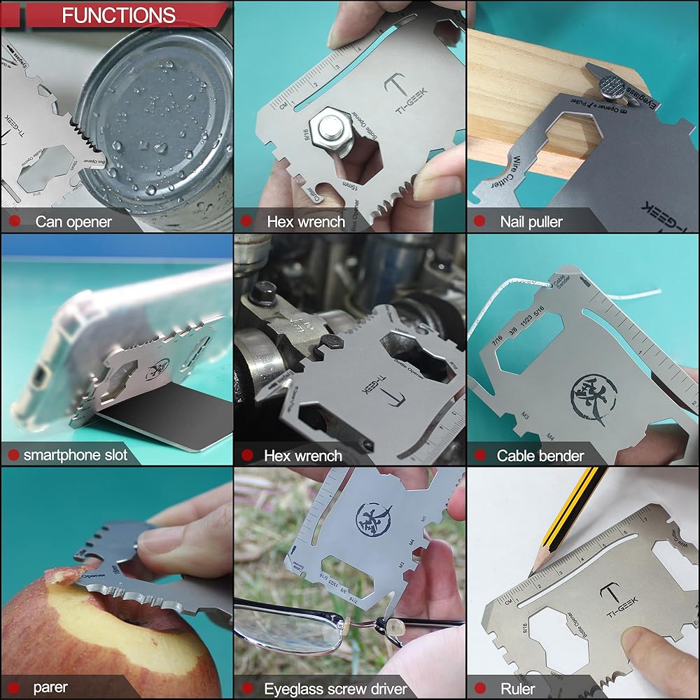 【متعددة الاستخدامات وصغيرة الحجم】الأداة المتعددة بحجم بطاقة الائتمان الخاصة بنا هي الأداة المثالية الكل في واحد للاستخدام اليومي ورحلات التخييم والأنشطة الخارجية. إنه مصنوع من التيتانيوم عالي الجودة وهو متين وخفيف الوزن، مما يجعل من السهل حمله في محفظتك أو جيبك.