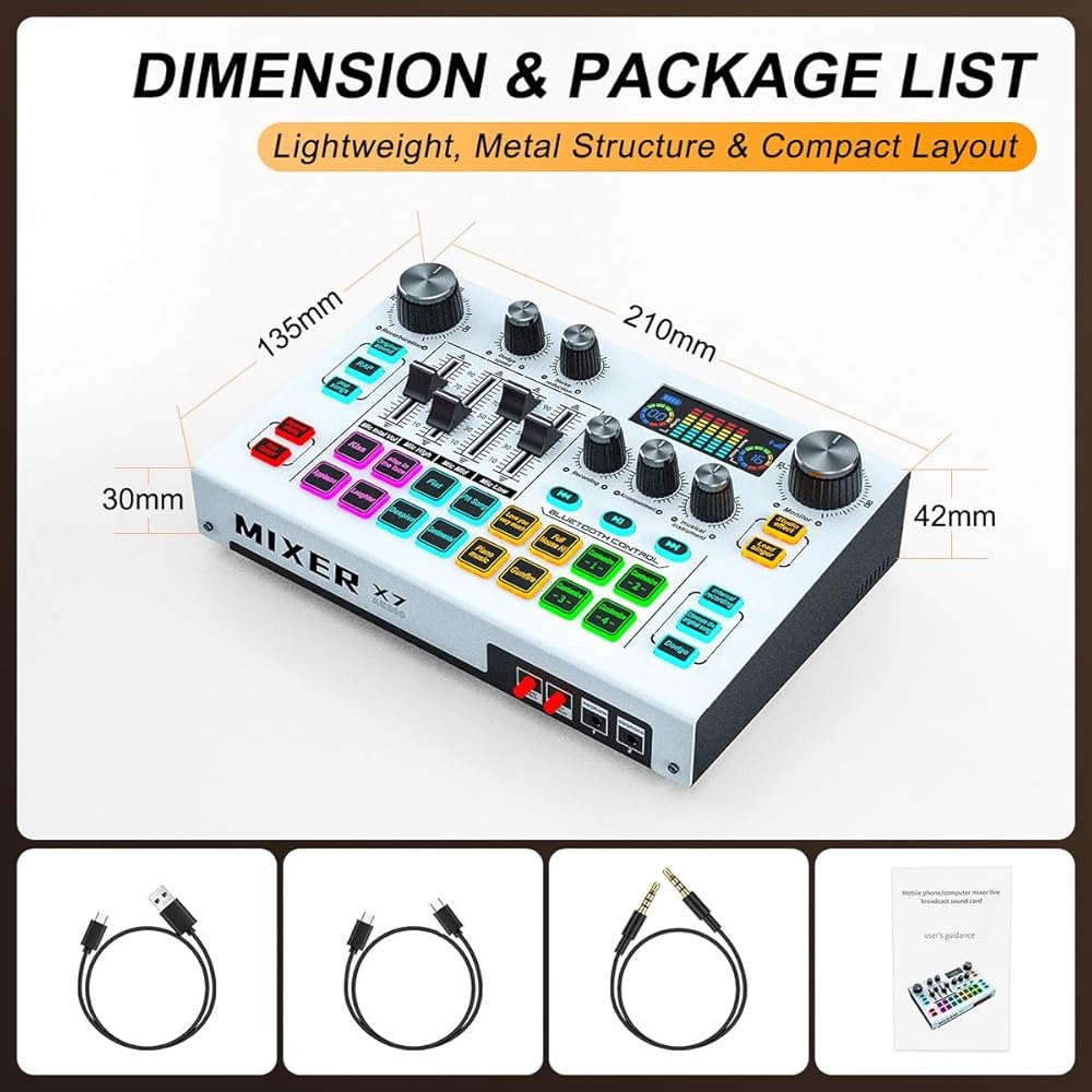• [استوديو خلاط بودكاست وقفة واحدة] - يوفر إعداد واجهة الصوت البودكاست X7 حلاً شاملاً وسهل الاستخدام لمبدعي المنزل، ويسمح للبودكاست بالتحكم بشكل فردي في الميكروفون، INST، الموسيقى، سماعات الرأس، الإخراج، 3- نطاق EQ وReverb، يمكنك دمج موارد الصوت الخاصة بك عبر الأجهزة، ولا يوجد إعداد معقد أو برامج تشغيل. قم بتبسيط الإعداد الخاص بك، وتحسين إنتاجك، وسهولة الحصول على خلط مثالي، ورفع مستوى إنتاج الصوت المنزلي الخاص بك عبر لوحة صوت البودكاست.