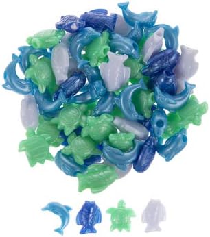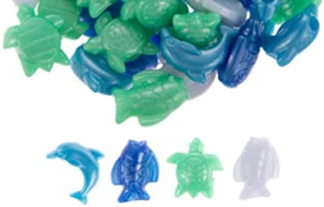 These Sea Life Novelty Beads features a pearlized finish on whimsical fish, turtle, and dolphin shapes. They're also great in designs where the risk of breakage is high, such as for keychains or jewelry for children. Use these fun plastic beads in jewelry, cards, and so much more!