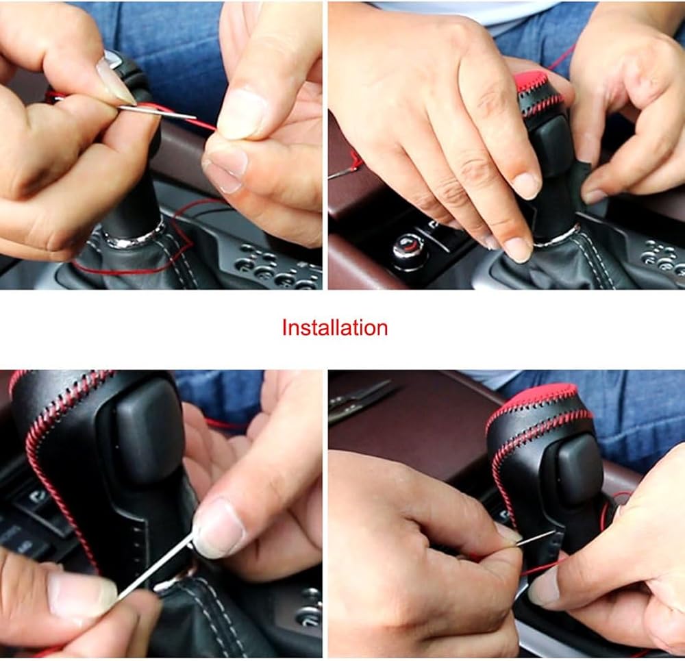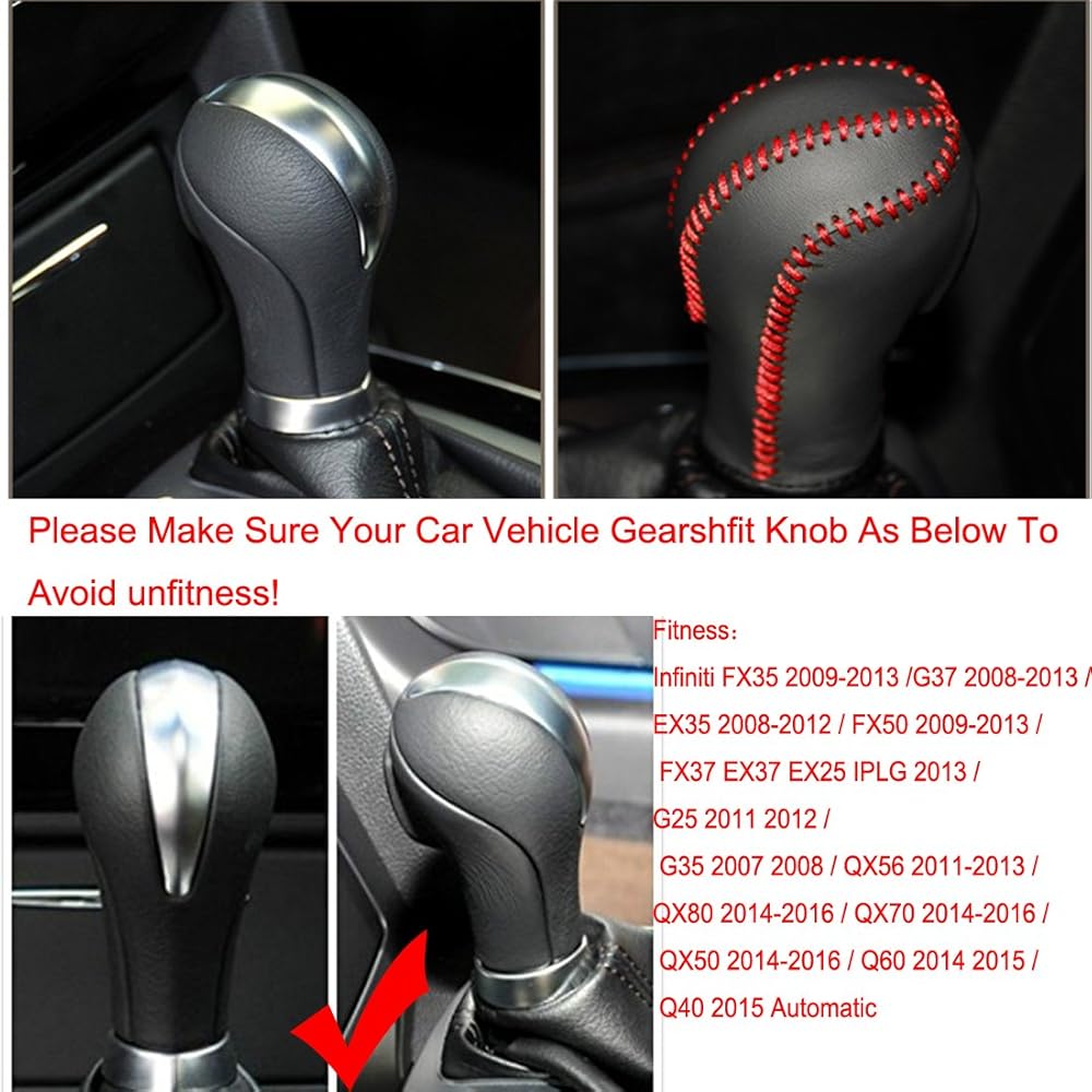 جلد طبيعي أوتوماتيكي عند مقبض ناقل الحركة غطاء واقي مناسب لإنفينيتي FX35 QX56 QX80 QX70 QX50 Q60 Q40 FX37 EX37 EX25 IPLG G25 (جلد أسود + أحمر)