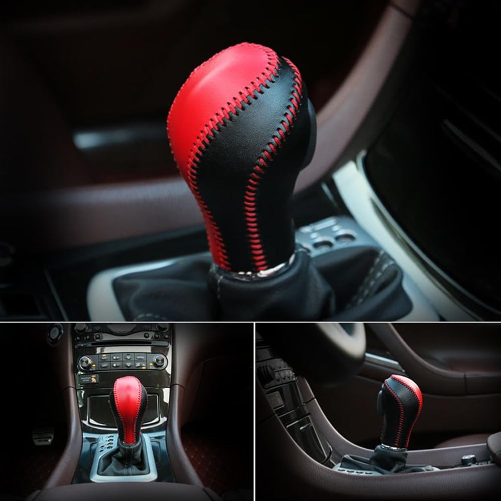 - *غطاء مقبض ناقل الحركة من الجلد الأصلي باللون الأسود مخيط يدويًا.