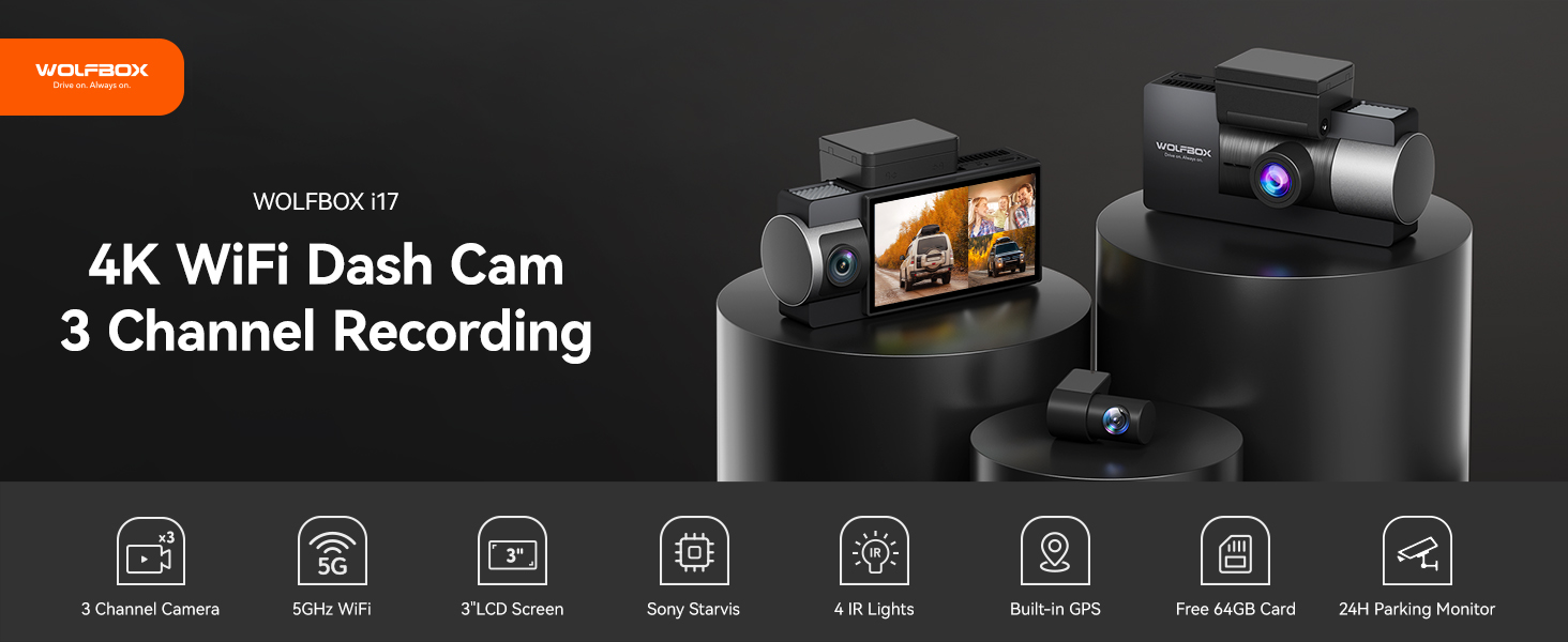 [بطاقة مجانية بسعة 64 جيجابايت وخدمة ما بعد البيع الفائقة] تم تجهيز كاميرا داش i17 للسيارات ببطاقة مجانية بسعة 64 جيجابايت موضوعة في فتحة البطاقة الخاصة بكاميرا داش. تقدم WOLFBOX دعمًا للعملاء مدى الحياة وضمانًا لمدة عام. إذا كانت لديك أي أسئلة، فيرجى الاتصال بنا عبر أمازون، أو الموقع الإلكتروني الرسمي، أو البريد الإلكتروني، لدينا فريق خدمة عملاء محترف على مدار 24 ساعة للإجابة على أسئلتك.