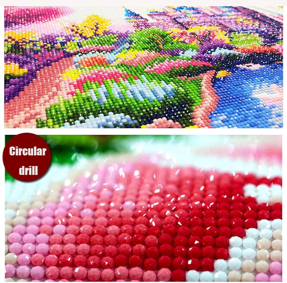 • ❀High Quality Canvas❀DIY Diamond Painting Full Drill with high clear printing oil canvas is waterproof and has even texture, the pattern itself has a sticky background and plastic overtop to keep the picture sticky and then the gems will hold, so that you are easy to complete the picture