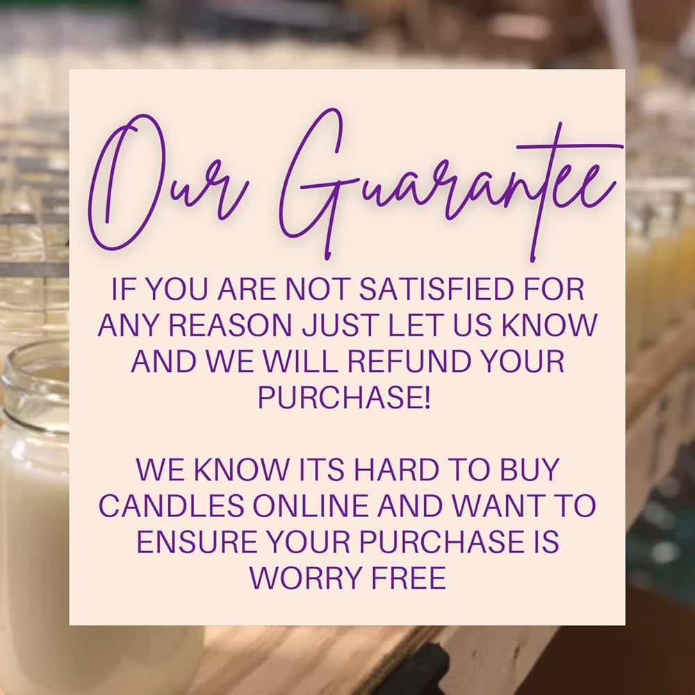 شموع الصويا من NIKA'S HOME ضمان 100%: إذا لم تكن راضيًا لأي سبب من الأسباب عن شموع شمع الصويا العضوية من NIKA's، فما عليك سوى إخبارنا وسنقوم برد أموالك التي قمت بشرائها! نحن نعلم أنه من الصعب شراء الشموع عبر الإنترنت ونريد التأكد من أن عملية الشراء الخاصة بك خالية من القلق.