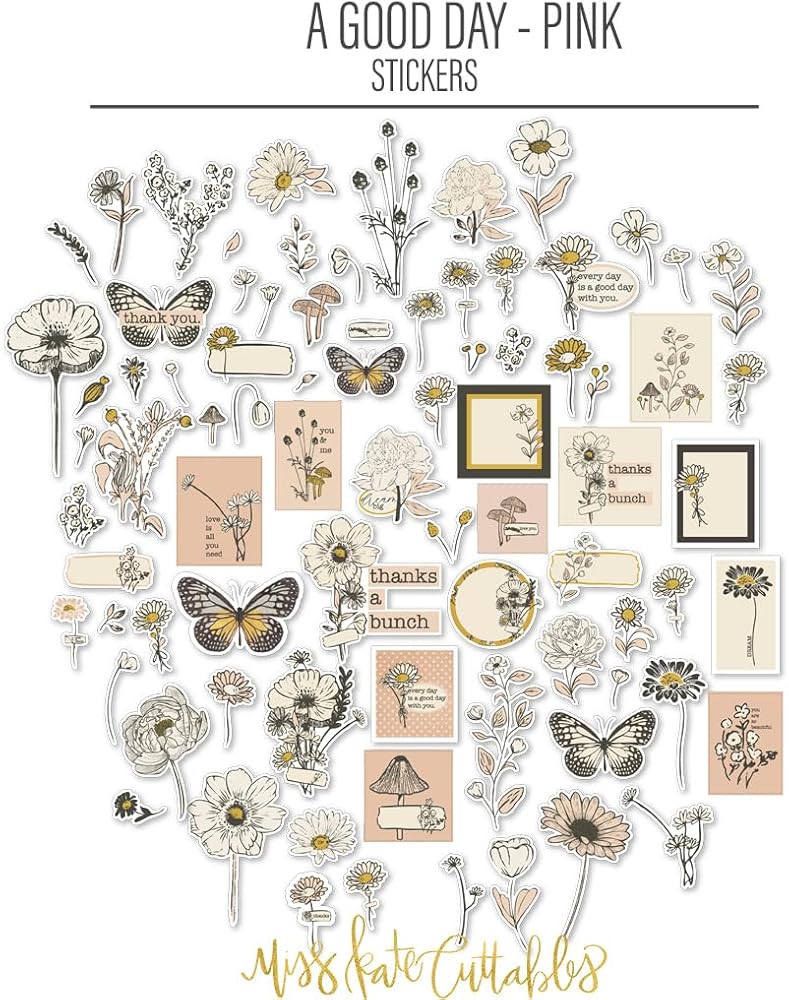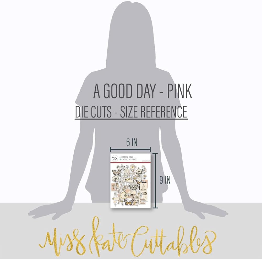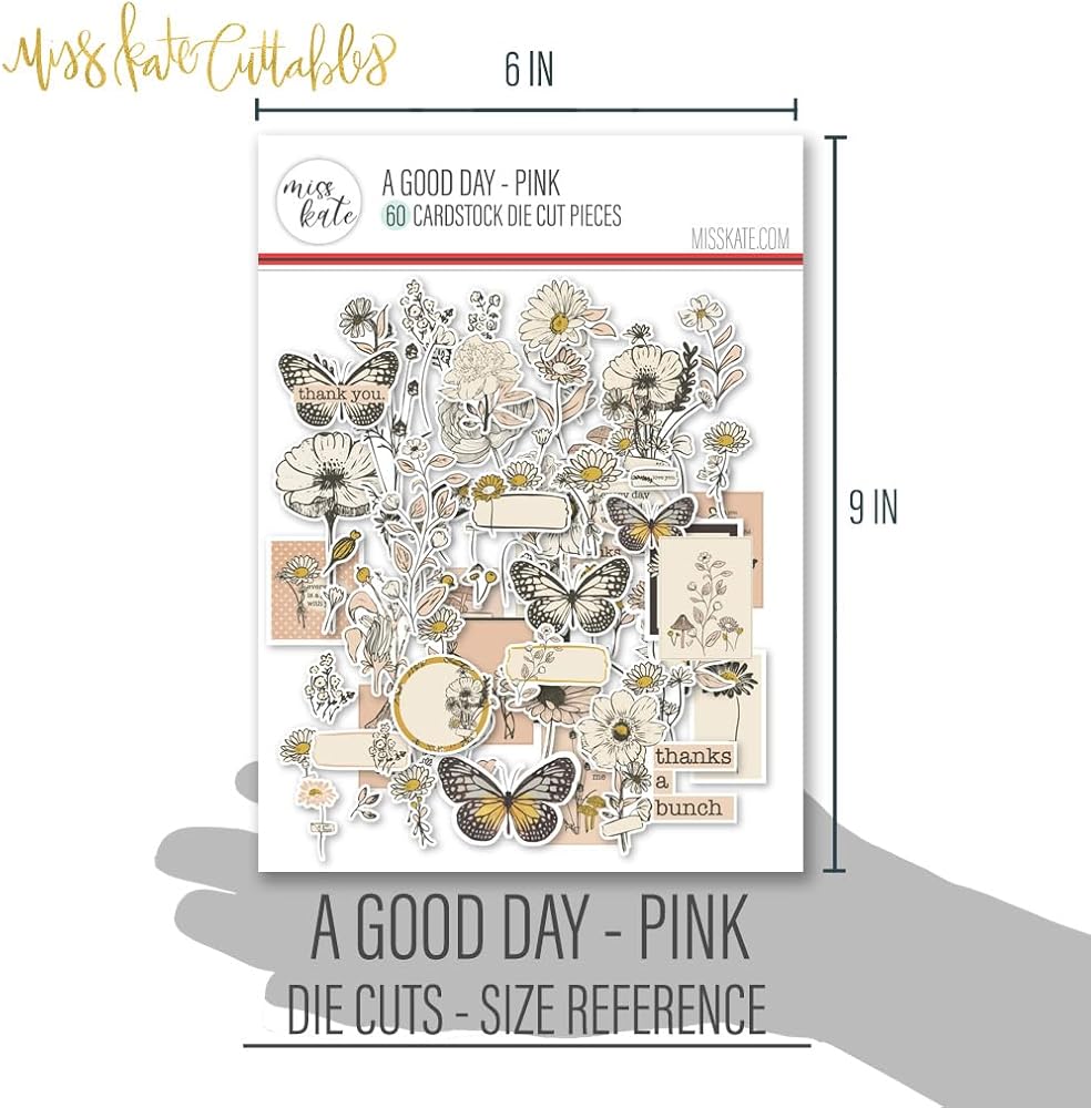 قطع قوالب ورقية - يوم جيد باللون الوردي - للفتيات الصغيرات في فصل الربيع - أكثر من 60 قطعة من القوالب - سجل قصاصات بطاقات بوزن 80 رطل - من تصميم Miss Kate Cuttables