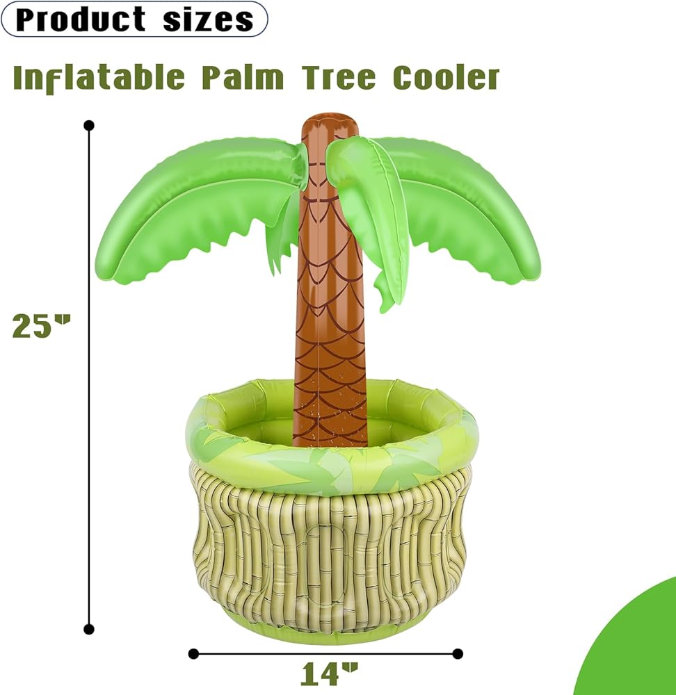 جودة ممتازة - مصنوع من بولي كلوريد الفينيل عالي الجودة، كل مبرد حمام سباحة مصمم ليتحمل الاستخدامات المتعددة. تتميز بألوان نابضة بالحياة وتصميمات شجرة النخيل الجميلة، وهي مثالية لتعزيز ديكورات الحفلات ذات الطابع الاستوائي.
