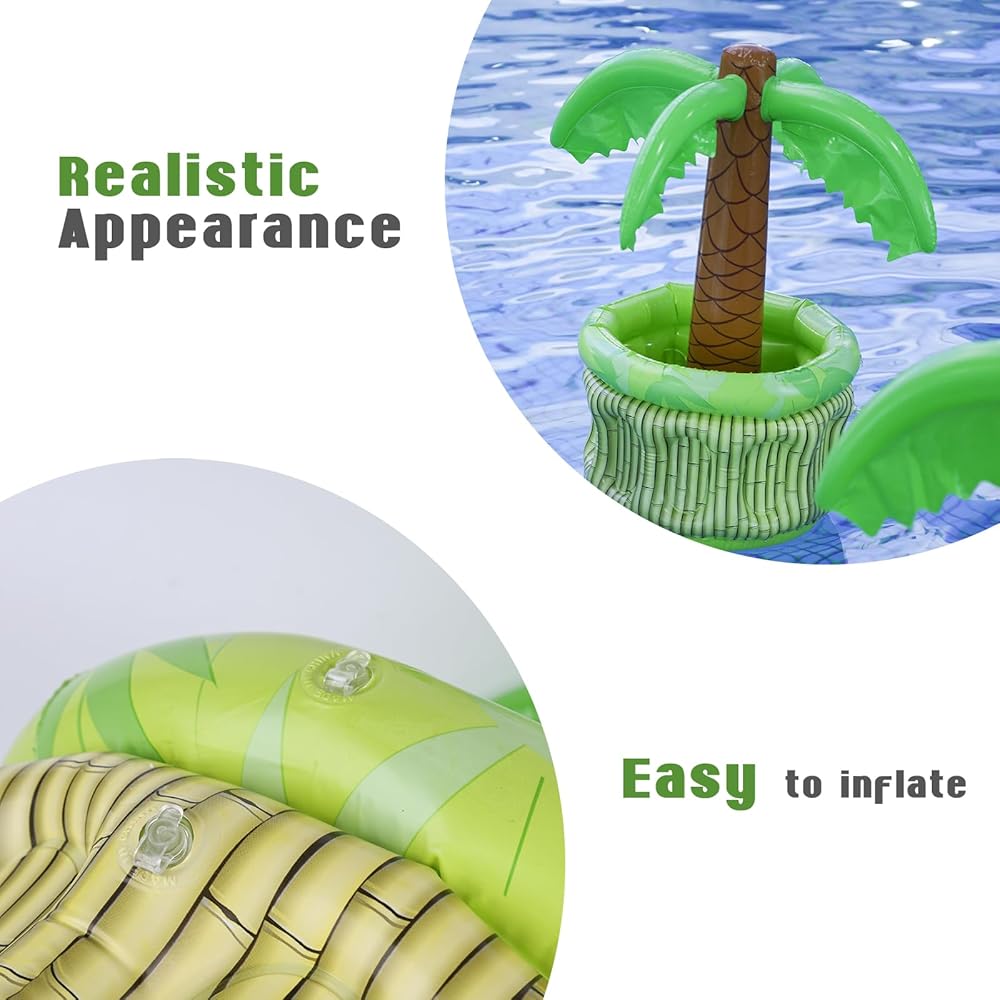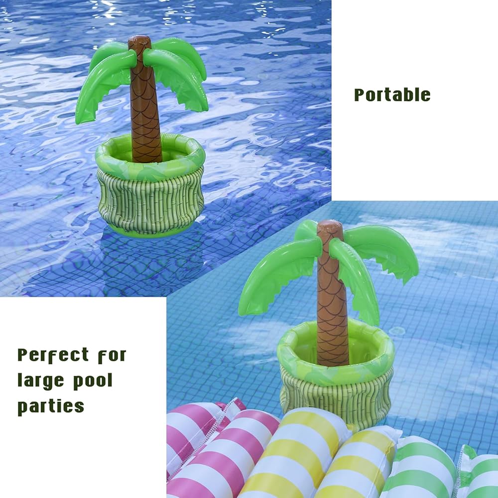 متضمن في العبوة - ستحصل على مبرد شجرة نخيل قابل للنفخ، مثالي للحفاظ على المشروبات باردة ويمكن الوصول إليها بسهولة أثناء الاسترخاء أو الحفلات بجانب حمام السباحة. ببساطة املأها بالثلج للحفاظ على المشروبات باردة، مما يجعلها إضافة مثالية لتجمعات حمام السباحة الصيفية.