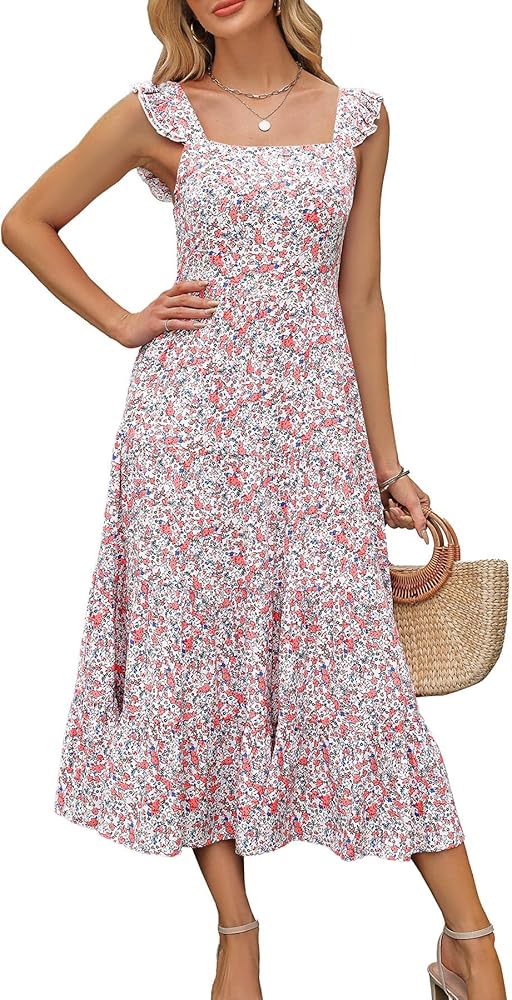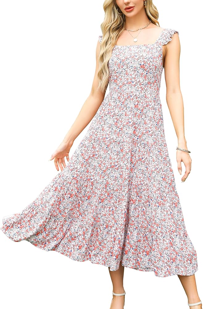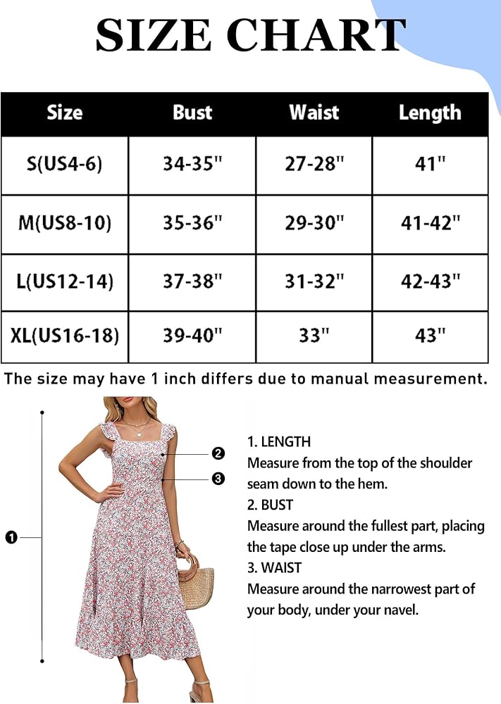 السمات: يتميز فستان الشمس هذا بطباعة زهور، ورقبة مربعة، وأكمام قصيرة مكشكشة، وطبقات ناعمة وانسيابية، وخصر مرن عالي، وتصميم مدخن قابل للتمدد. يمكن لهذا الفستان أن يضفي الأناقة والأنوثة والراحة على أي مناسبة بفضل طبعته الزهرية وتفاصيل الكشكشة والملاءمة الجذابة.