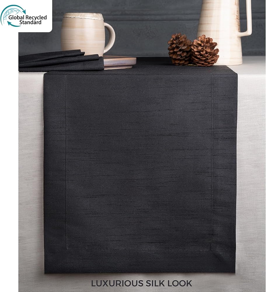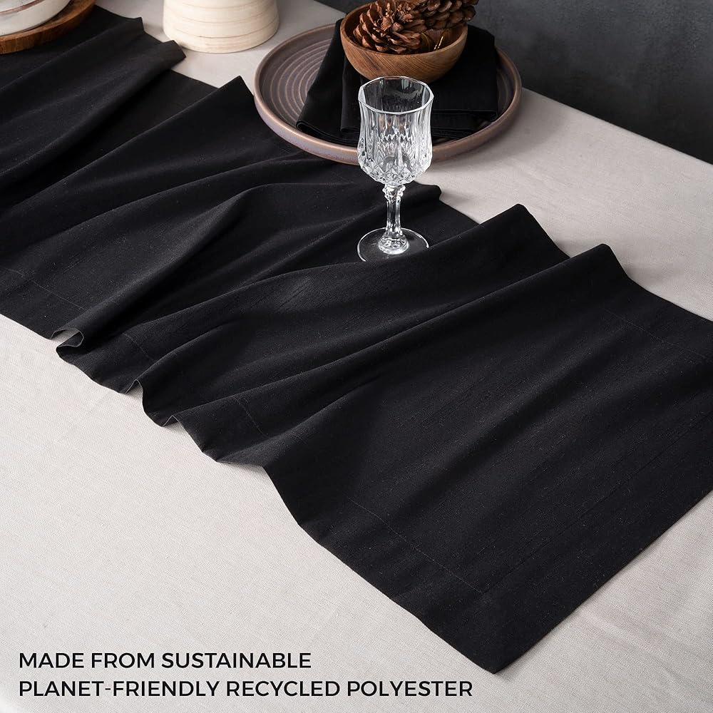نسيج صديق للأرض - نسيج معاد تدويره بنسبة 100% يلبي المعايير العالمية المعاد تدويرها، مما يضمن سلسلة توريد أخلاقية وصديقة للأرض. يحتوي كل مفرش طاولة على 10 إلى 35 زجاجة بلاستيكية معاد تدويرها مما يمنعها من أن تنتهي في المحيطات أو مكبات النفايات.