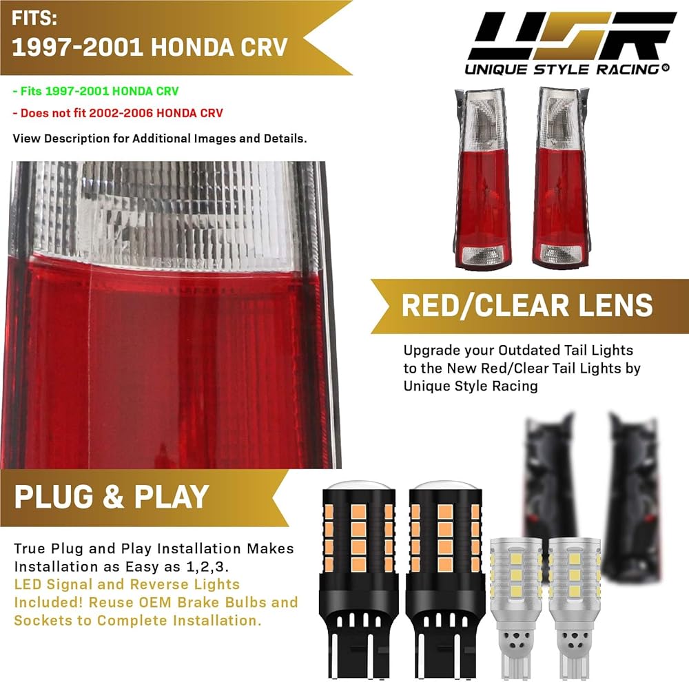 مصباح خلفي USR 97-01 CR-V - مع ترقيات 4 لمبات LED - مجموعة مصابيح خلفية حمراء / شفافة (يسار + يمين) - متوافق مع 1997-2001 Honda CRV 2WD أو 4WD الجيل الأول من جميع TRIMS SUV