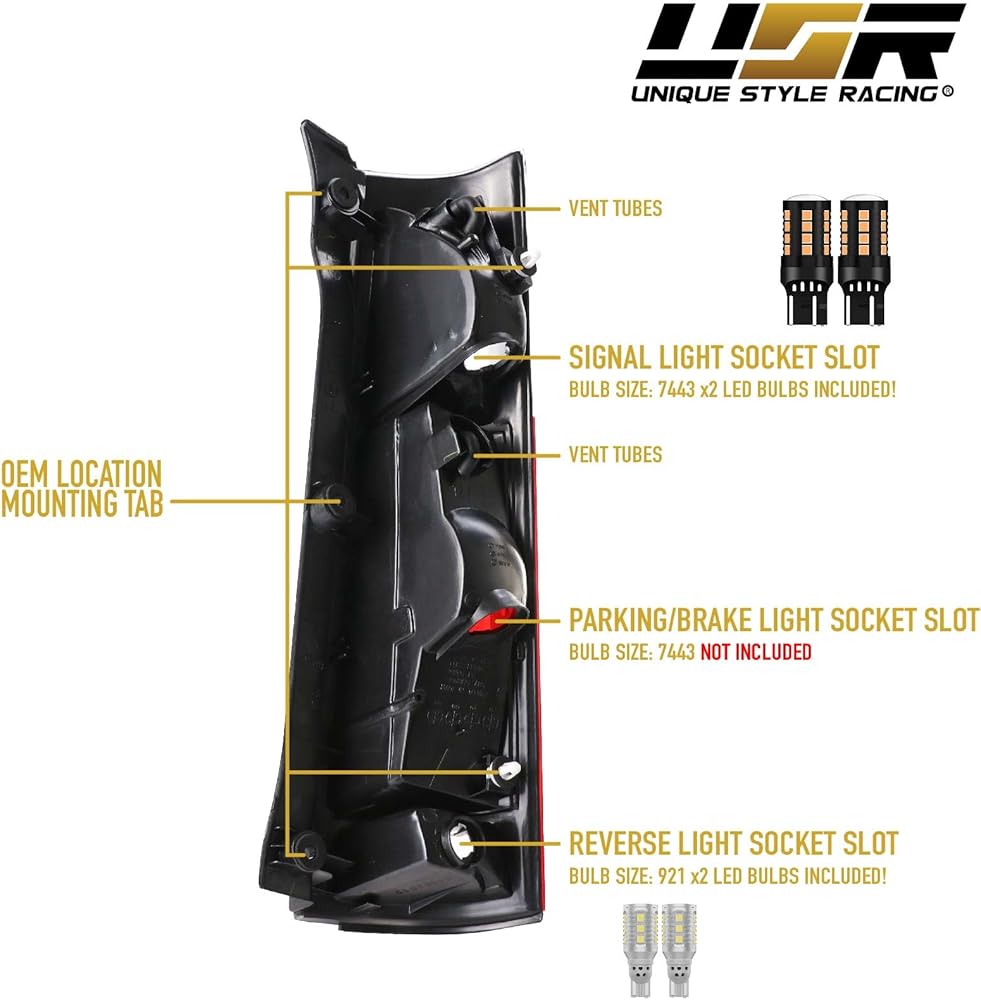 ✔️ 《 كل شيء متضمن 》 مجموعة تجميع المصابيح الخلفية هذه (يسار + يمين) تأتي مع × 2 لمبات إشارة الانعطاف LED كهرمانية (حجم 7440)، × 2 مصابيح عكسية بيضاء LED (حجم 921). بالنسبة لأضواء مواقف السيارات والفرامل، ستحتاج إلى إعادة استخدام المصابيح المتوهجة الموجودة لديك ونقل الأسلاك والمقابس الخاصة بك لإكمال التثبيت.