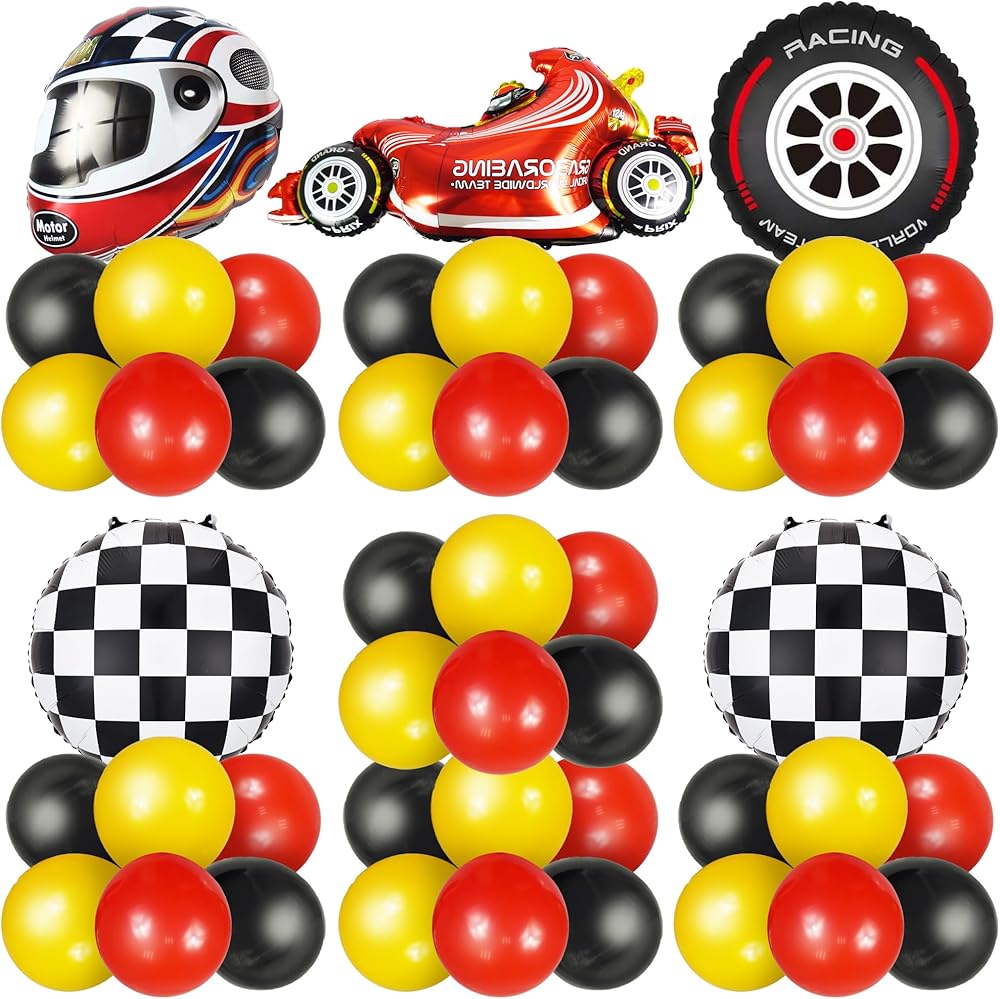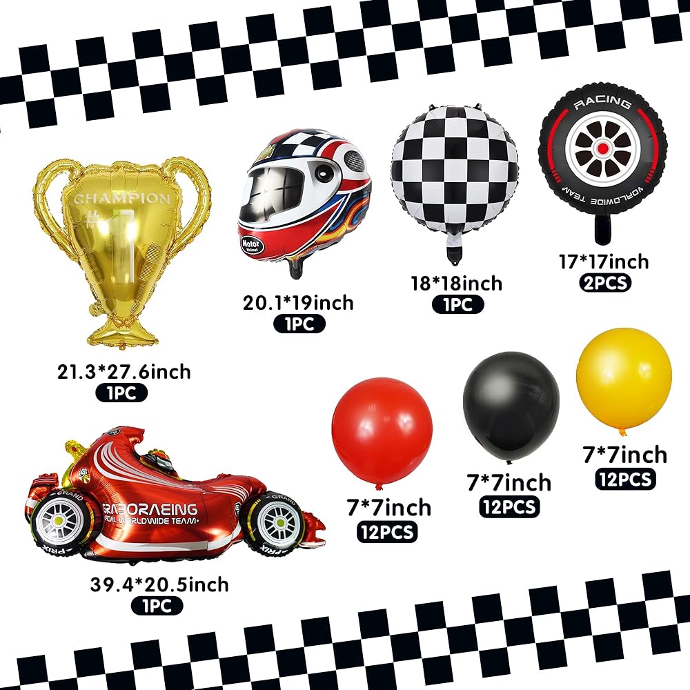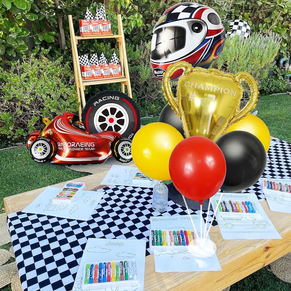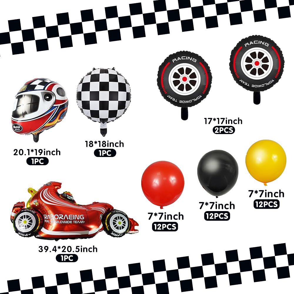 بالونات سباق السيارات، زينة حفلات سباق السيارات، خوذات الإطارات، بالونات المتسابق للرجل والصبي والأطفال، حفلة سباق السيارات، زينة عيد ميلاد سريعة، لوازم استحمام الطفل (سباق 1)