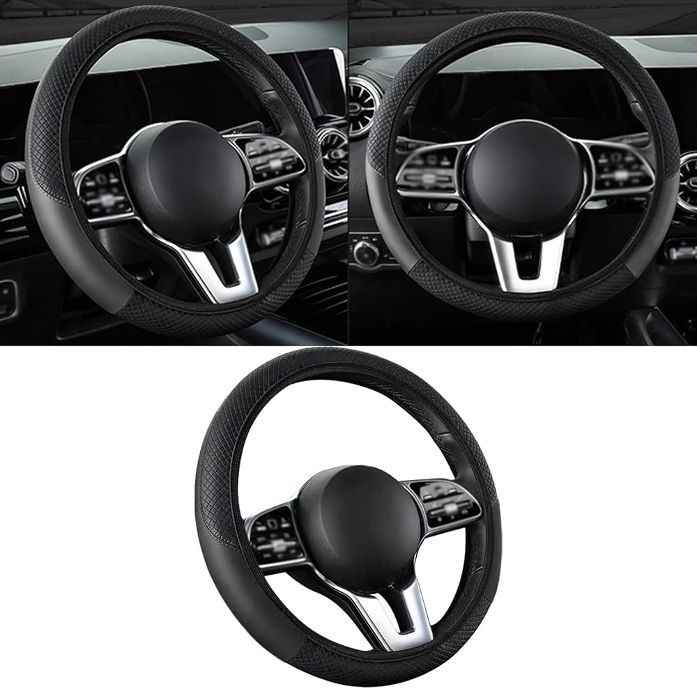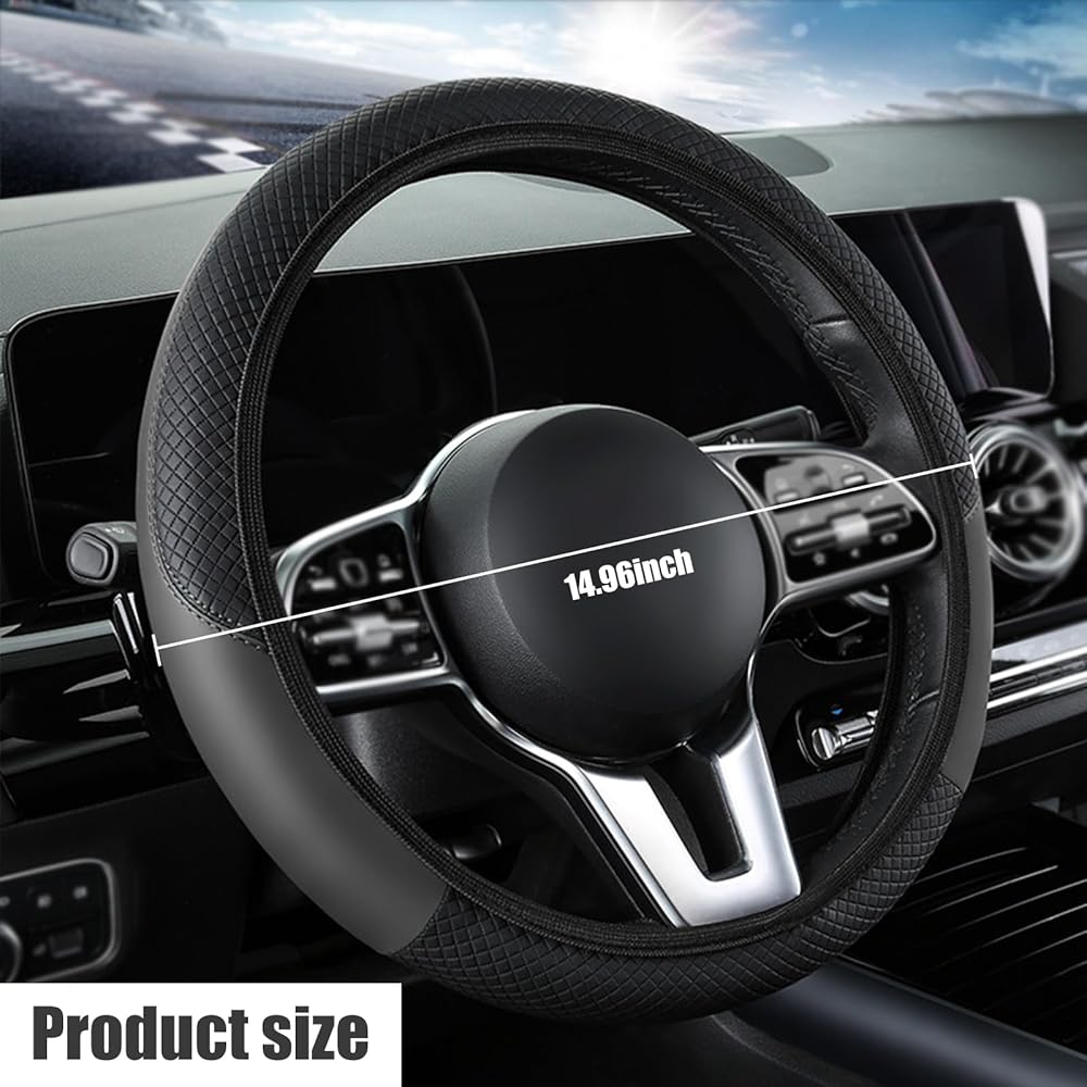 جودة فاخرة: غطاء عجلة قيادة السيارة مصنوع من الجلد الصناعي. يتمتع هذا المنتج بتهوية جيدة وملمس مريح لليد. يمكنه امتصاص ضغط كف غطاء عجلة القيادة على عجلة القيادة بشكل فعال. إنه مقاوم للاهتراء ومتين، ومناسب لجميع المواسم.