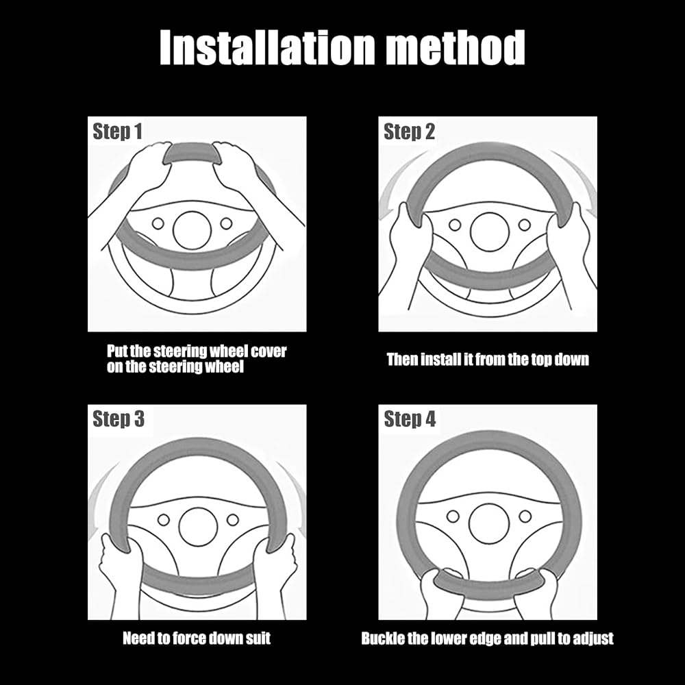 سهولة التثبيت: التثبيت سهل ويستغرق بضع دقائق فقط حتى يكتمل. ضع غطاء عجلة القيادة أولاً على عجلة القيادة، ثم قم بتثبيته من الأعلى إلى الأسفل (تحتاج إلى استخدام القوة لتثبيته لأسفل)، وأخيرًا اضغط على الحافة السفلية وادفع واسحب لضبطه.