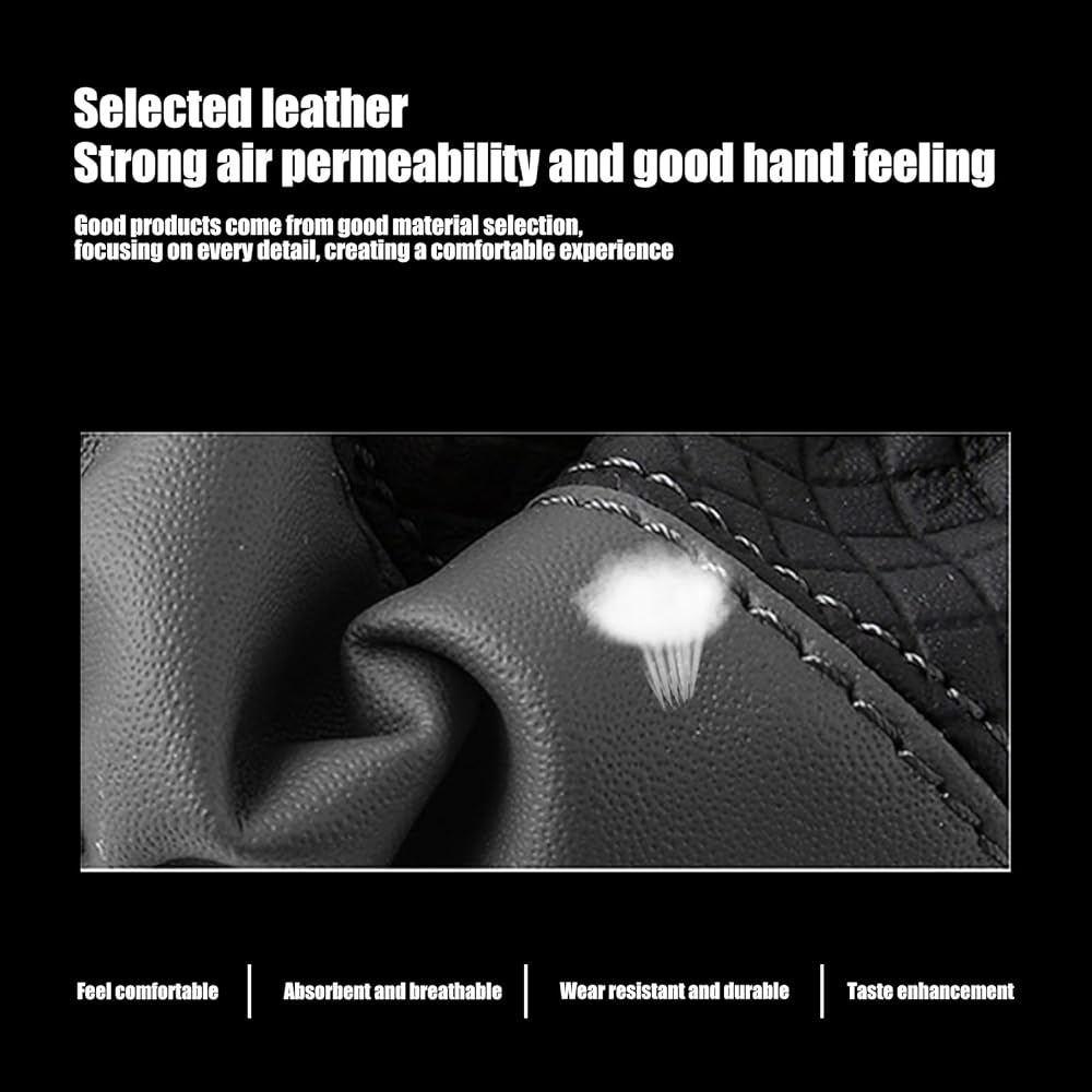 الوظيفة: عجلة القيادة هذه ماصة للعرق، ومسامية، وغير قابلة للانزلاق ومستقرة، وتمنع راحة يدك من التعرق وتتسبب في انزلاق عجلة القيادة. يتيح هذا المنتج لعجلة القيادة الخاصة بك أن تناسب سيارتك بشكل أفضل وتوفر حماية ممتازة، مما يجعل سفرك أكثر راحة وأمانًا.