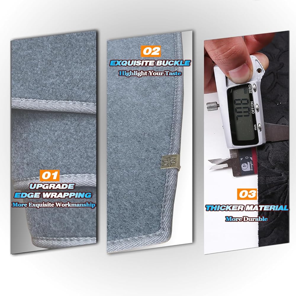 • 【ترقية المواد】- مصنوع من خمس طبقات من التكنولوجيا المركبة والداكرون، يوفر غطاء لوحة أجهزة القياس QUYDDC مستوى فائق من المتانة والراحة، مما يضمن حماية طويلة الأمد للوحة أجهزة القياس الخاصة بسيارتك. قم بترقية الجزء الداخلي لسيارتك بغطاء لوحة أجهزة القياس عالي الجودة الذي لا يعزز المظهر الجمالي فقط ولكنه يوفر أيضًا حماية معززة ضد الخدوش وأضرار أشعة الشمس والتآكل.