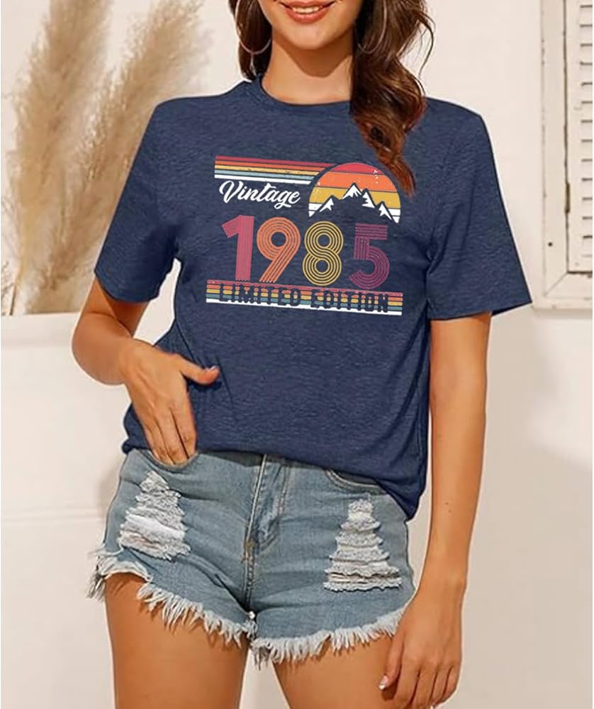 المزايا: قميص لطيف عام 1984، قميص عيد الميلاد الأربعين، هدايا حفلات عيد الميلاد، قميص عيد الميلاد الأربعين العتيق، تي شيرت نسائي قديم الأربعين، تي شيرتات برسومات مطبوعة بحروف، قمصان قصيرة الأكمام، تي شيرت كاجوال.