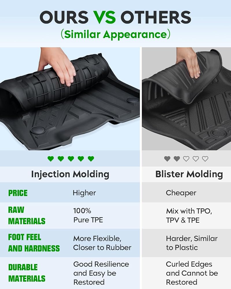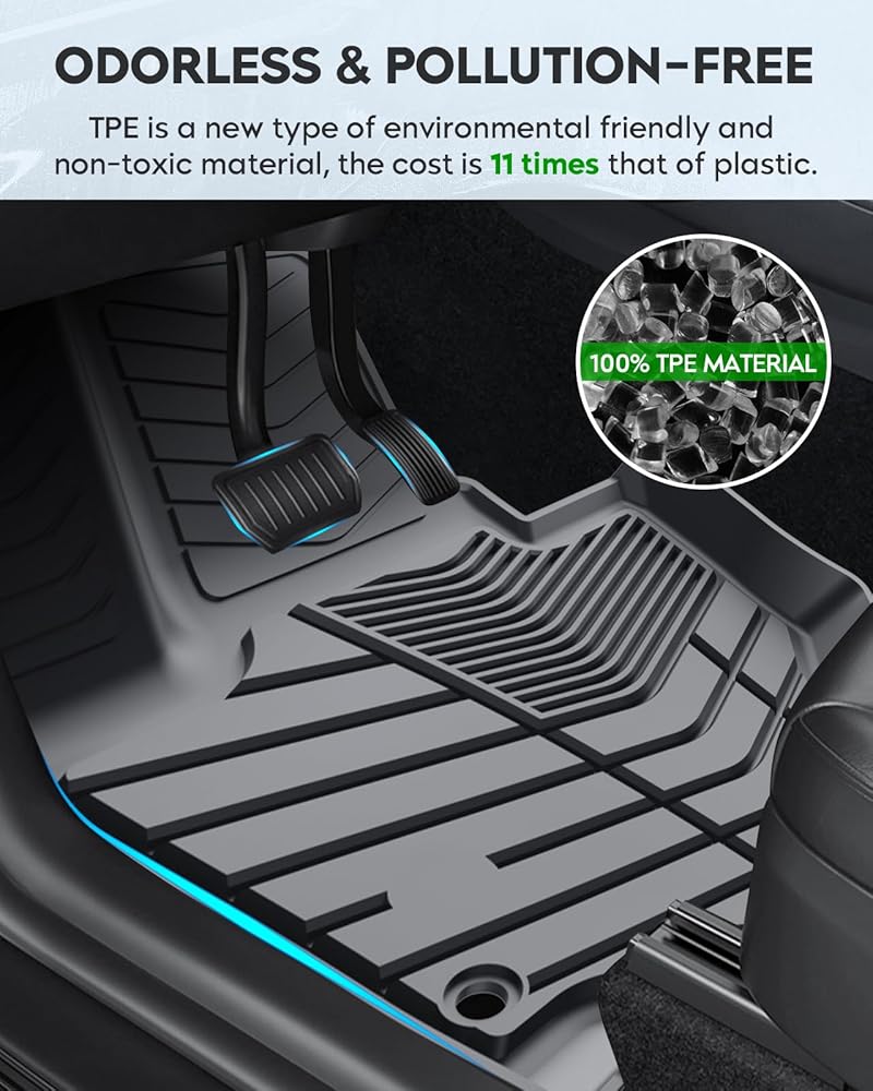 • ✅مواد ناعمة ومتينة: لا توفر مادة TPE هذه ملمسًا ممتازًا ومقاومة شديدة للتآكل فحسب، بل تظل أيضًا مرنة في ظل الطقس البارد الشديد. قوية ومرنة ومقاومة للاحتكاك. بالكاد تفقد الحواف المطورة شكلها الأصلي، مما يجعلها تتجعد.