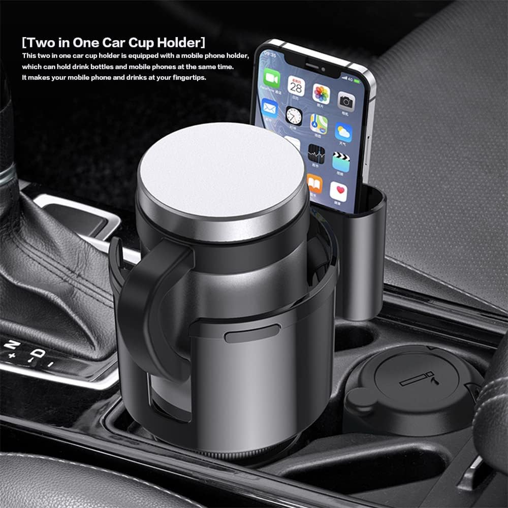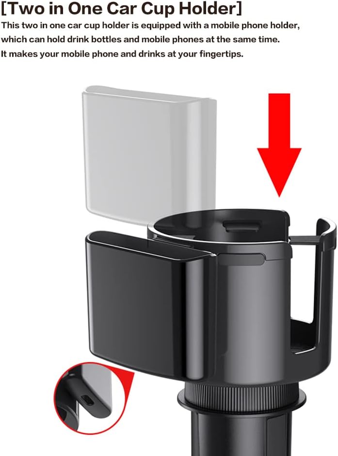 [حامل أكواب سيارة اثنين في واحد] حامل أكواب السيارة اثنان في واحد مجهز بحامل هاتف محمول، يمكنه حمل زجاجات المشروبات والهواتف المحمولة في نفس الوقت. فهو يجعل هاتفك المحمول والمشروبات في متناول يدك.