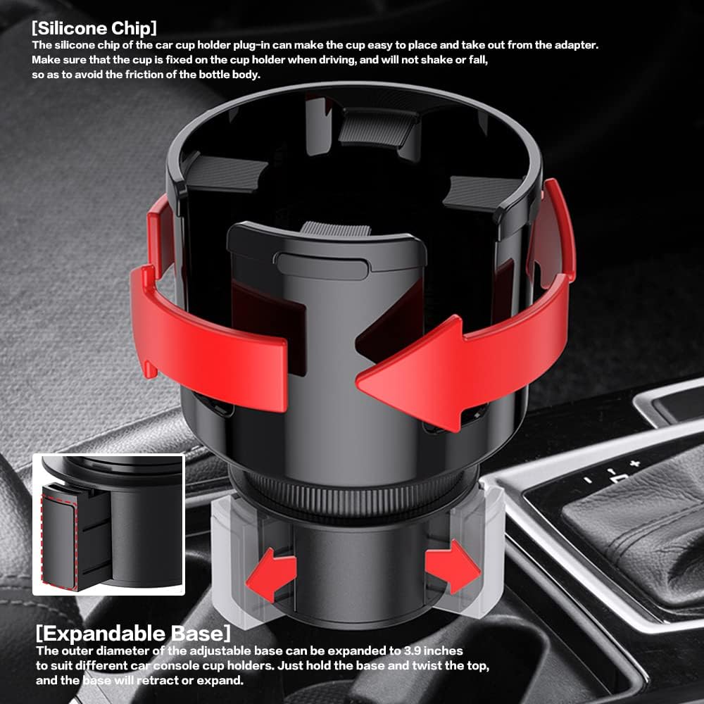 [قاعدة قابلة للتوسيع] يمكن توسيع القطر الخارجي للقاعدة القابلة للتعديل إلى 3.9 بوصة لتناسب حاملات الأكواب المختلفة لوحدة التحكم في السيارة. ما عليك سوى الإمساك بالقاعدة ولف الجزء العلوي، وسوف تتراجع القاعدة أو تتوسع.
