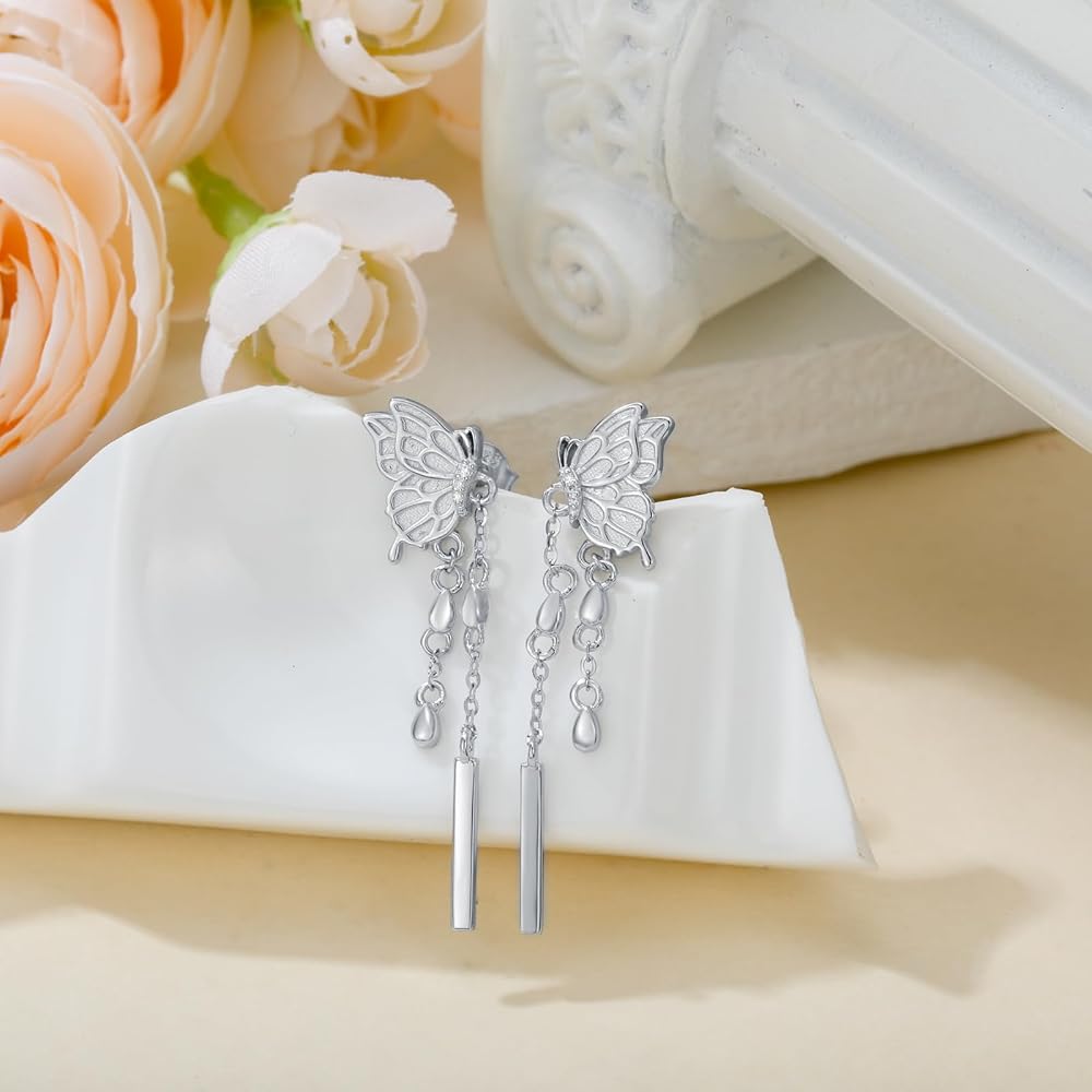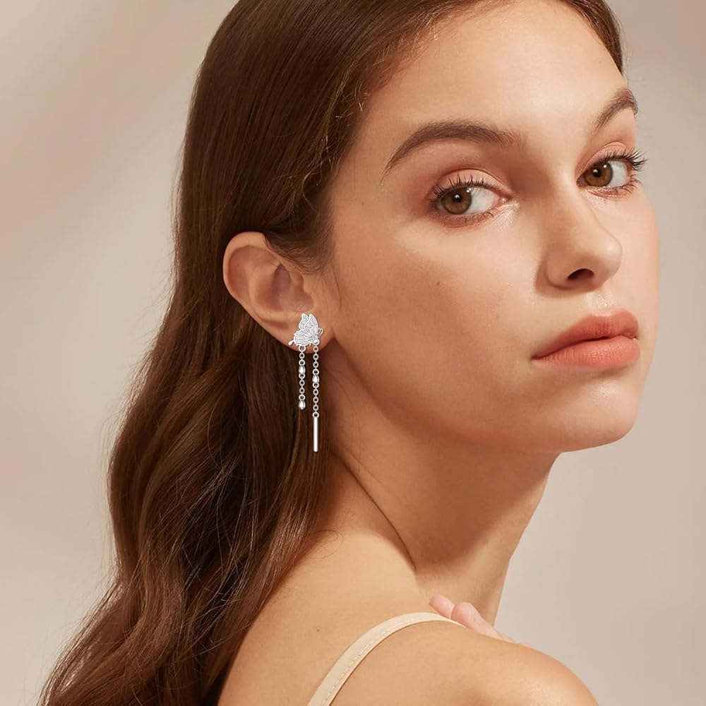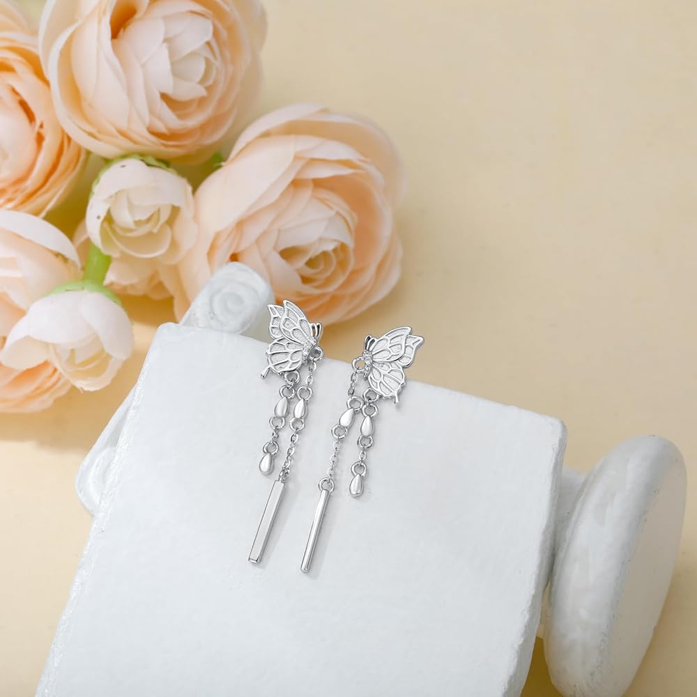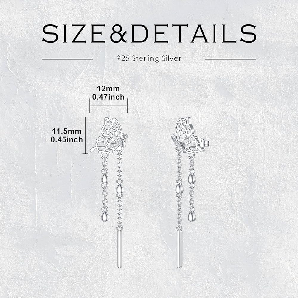 💎الحجم المناسب: حجم الأقراط: 12 ملم (0.472 بوصة) × 11.5 ملم (0.452 بوصة) × 2.6 ملم (0.102 بوصة)، الوزن الإجمالي لكل زوج من الأقراط المتدلية على شكل فراشة حوالي 3.4 جرام