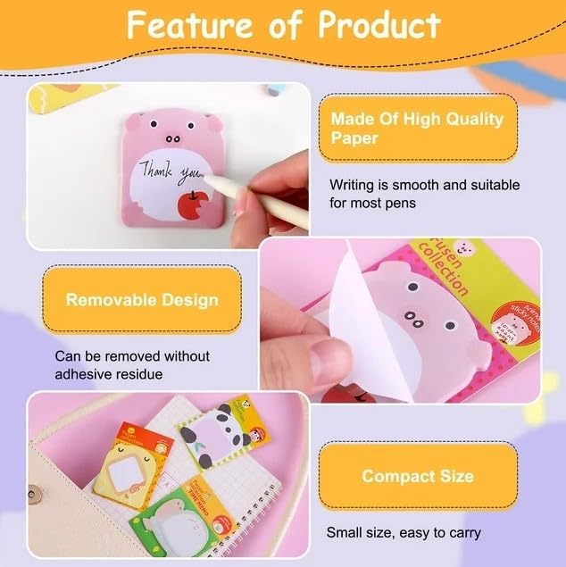 Multicolor Options: The sticky notes come in a range of bright and vibrant colors, complementing the cute animal patterns. The colors are sure to catch the eye and brighten up any workspace.