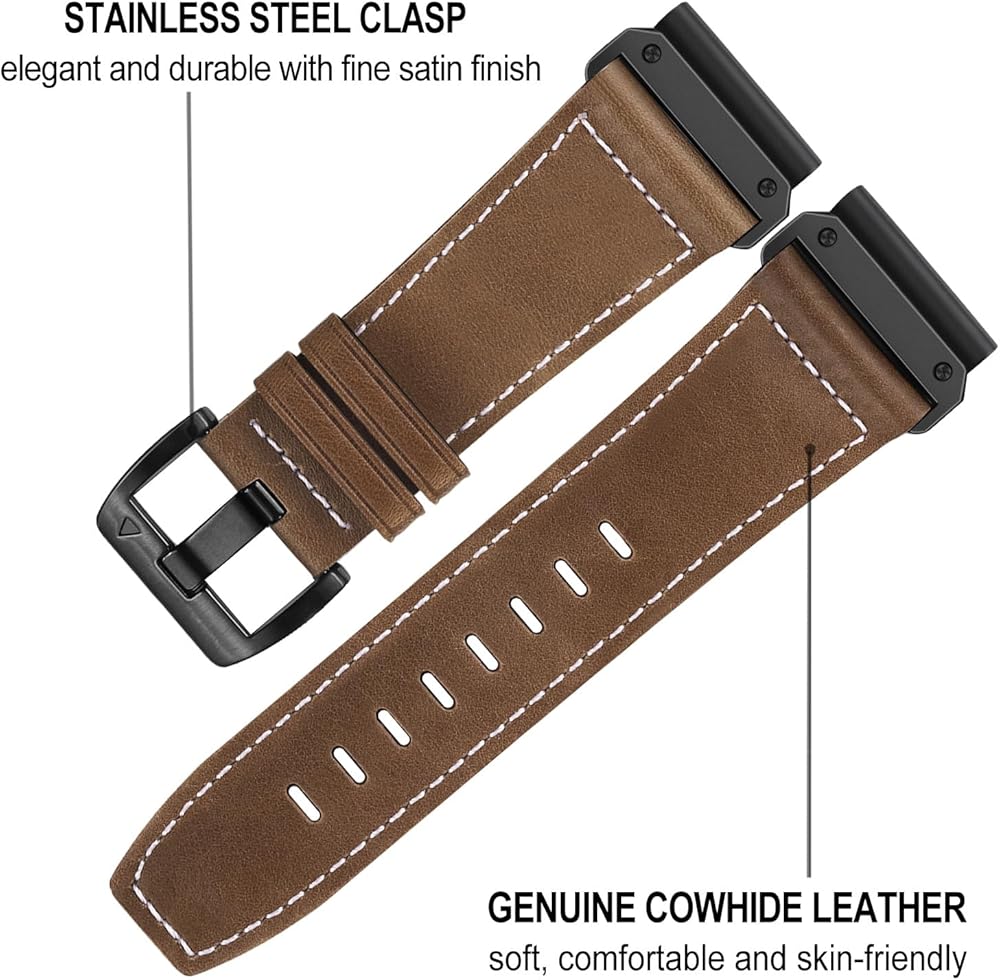سوار ساعة TRUMiRR لـ Fenix 7/6 Pro / 5 Plus، 22 مم من الجلد سريع الفك وسهل الارتداء، حزام محول من الفولاذ المقاوم للصدأ لـ Garmin Forerunner 965 / Epix Gen 2 47 مم / Instinct 2