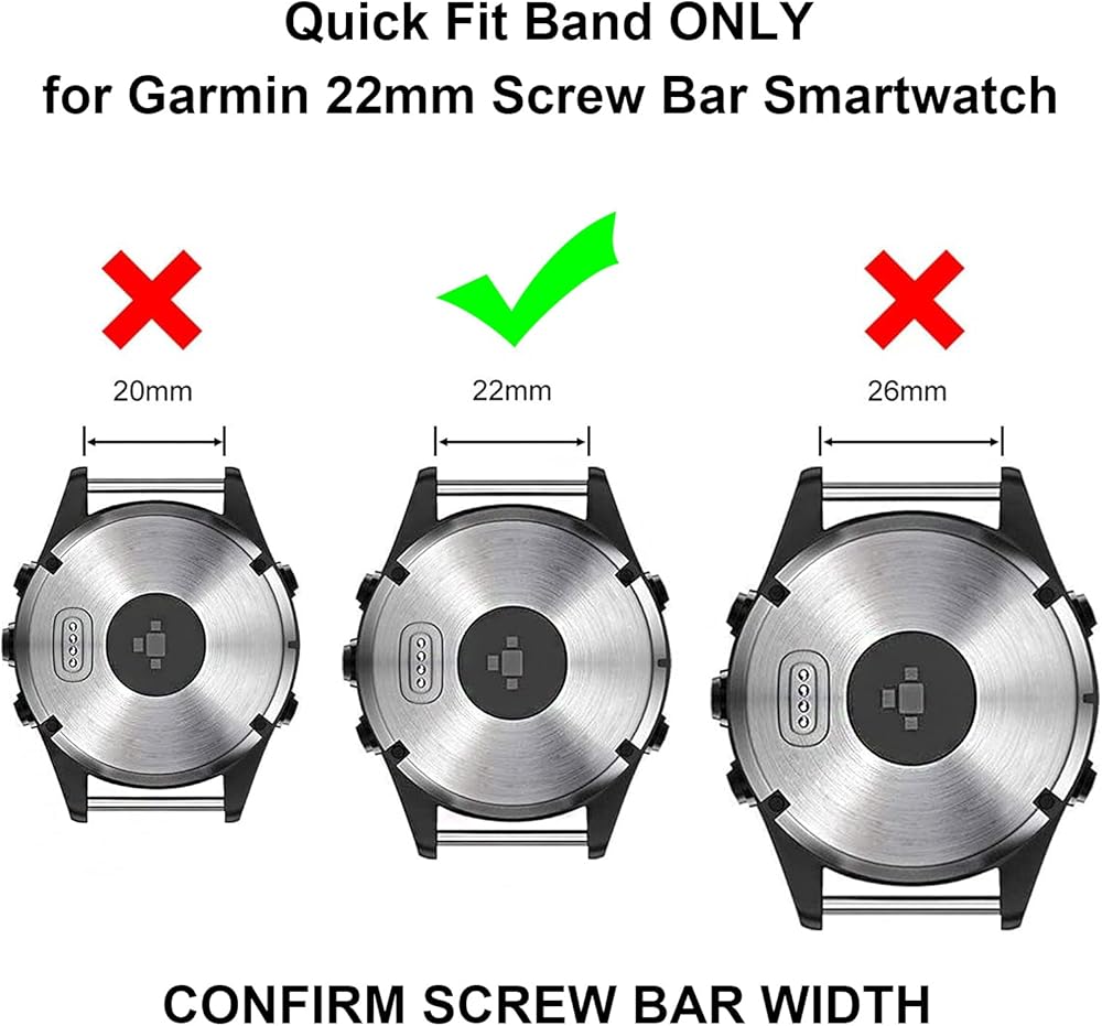 الطرز المتوافقة: تناسب Garmin Fenix 7 / 7 Pro، Fenix 6 / 6 Pro، Fenix 5 / 5 Plus، Epix Pro (Gen 2 47mm) / epix Gen 2 (47 مم)، Instinct 2 / Instinct، Forerunner 965 / 955 / 945 / 935، النهج S70 (47 ملم) / S62 / S60، Descent G1، Quatix 7 Pro / 7 / 6 / 5، MARQ Adventurer (الجيل 2) / Aviator (الجيل 2) / الكابتن / لاعب الجولف. يرجى التحقق من سوار الساعة الأصلي الخاص بك سواء كان يحمل علامة "22"، إذا كانت الإجابة بنعم، فإن حزام الساعة يناسب ساعة Garmin الخاصة بك.