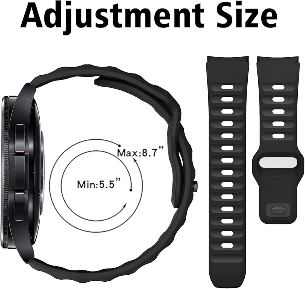 【مصممة لتدوم طويلاً، صُممت أحزمة السيليكون عالية الجودة الخاصة بنا لساعة Galaxy Watch 6 لتدوم طويلاً، وهي مقاومة للبقع والعرق والخدوش. يمكنها تحمل التدريبات المكثفة مع ضمان بقاء بشرتك قابلة للتنفس ومريحة دون أي تهيج طوال اليوم.