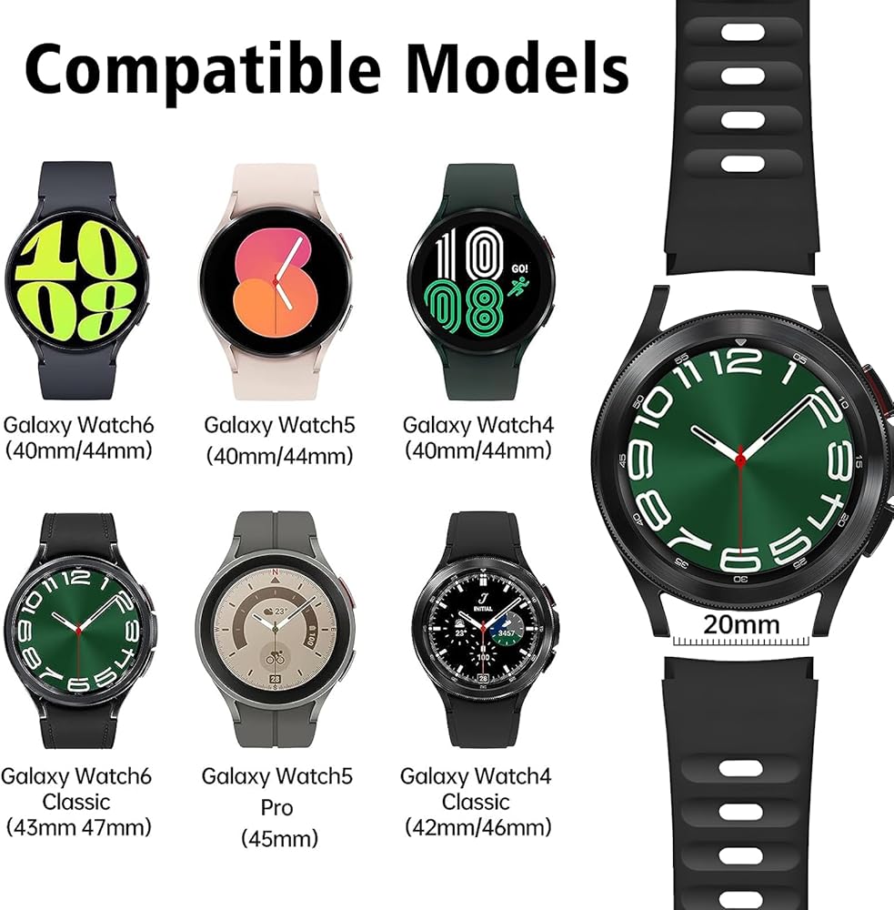 【نموذج متوافق】سوار سيليكون متين لا يوجد به فجوة متوافق مع Galaxy Watch 6 Bands Classic 47mm 43mm، Galaxy Watch 6 band 40mm 44mm، Galaxy Watch 5 band 40mm 44mm، Galaxy Watch 5 Pro band 45mm، Galaxy Watch 4 band 40mm 44mm، Galaxy Watch 4 شريط كلاسيكي 46 ملم 42 ملم.