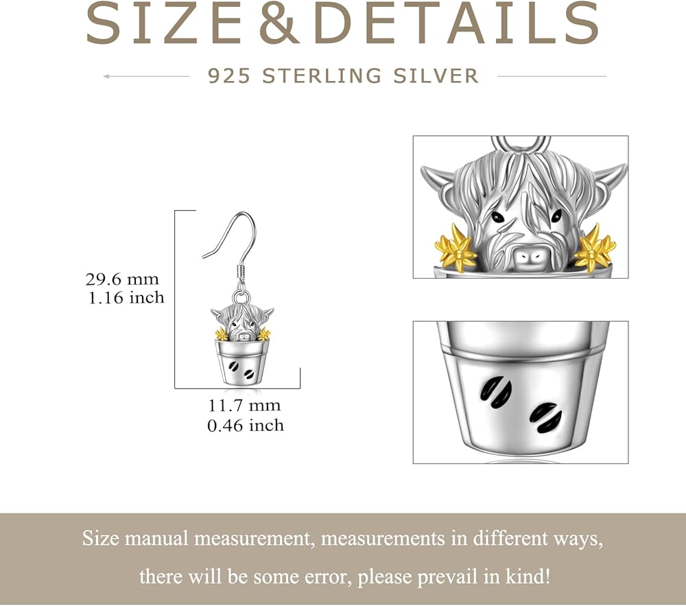 • 🐄Size: Highland cow earrings pendant: 29.6 mm * 11.7 mm(1.16*0.46 inch). Packaged in an elegant box with SILBAZ logo, Perfect for giving or safekeeping. A pair of highland cow earrings; 1 x polishing cloth.