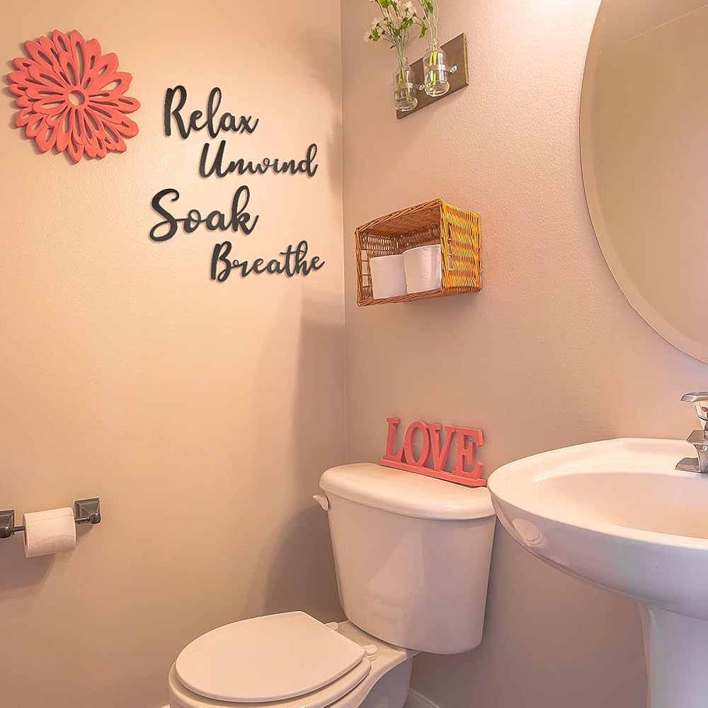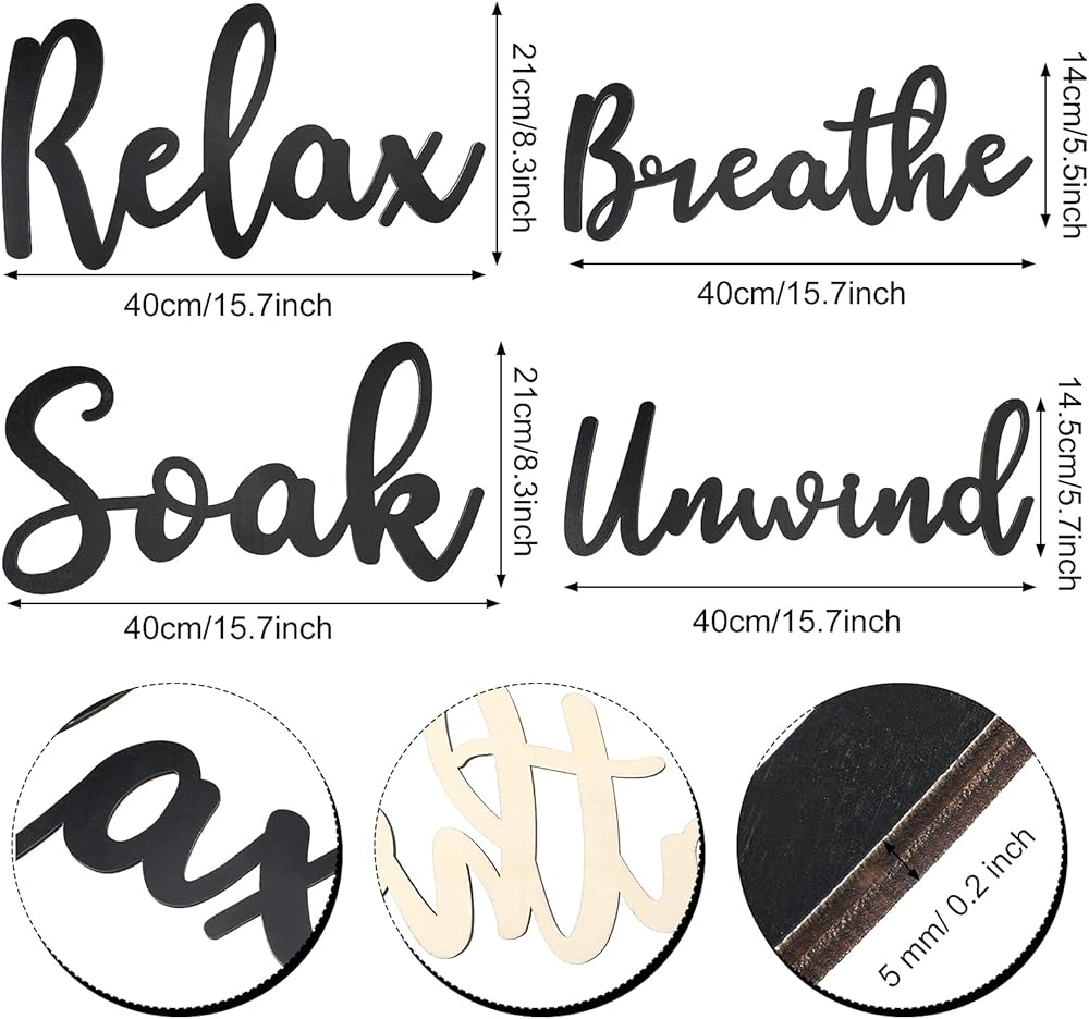4 قطع من ديكور الحمام، لافتة حمام خشبية، نقع للاسترخاء، الاسترخاء، التنفس، لوحة جدارية فنية، ديكورات مقطوعة للمزرعة، علامة للحمام، غرفة تبديل الملابس، غرفة الغسيل (أسود)