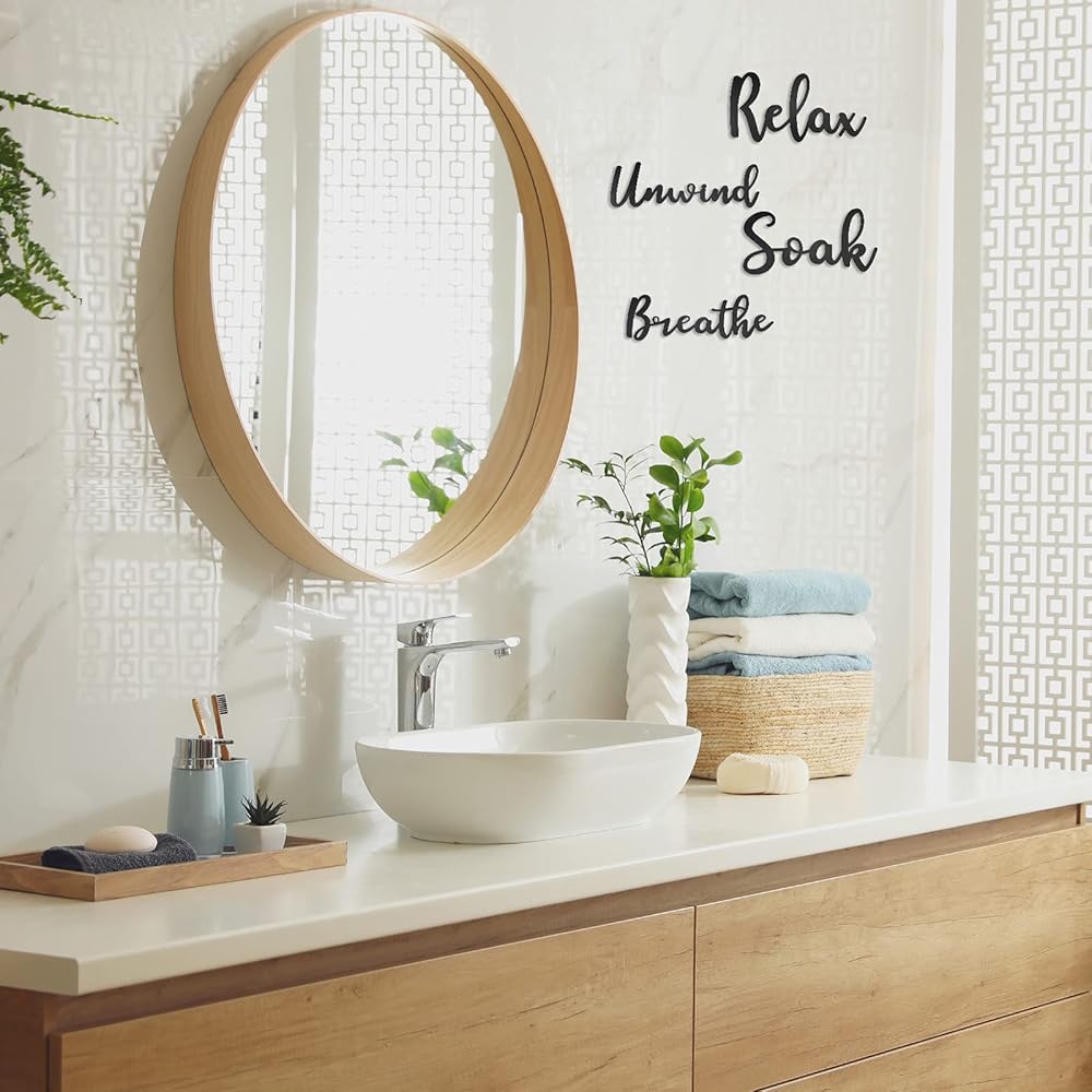 هيكل متين: ديكور الحائط الخشبي مصنوع من خشب عالي الجودة قريب من الطبيعة، آمن وغير ضار، عديم الرائحة وليس من السهل أن يتآكل أو ينكسر، يمكنك الاحتفاظ به لفترة طويلة كديكور رائع للحائط المنزلي، مما يجعل حمامك تبدو رشيقة.