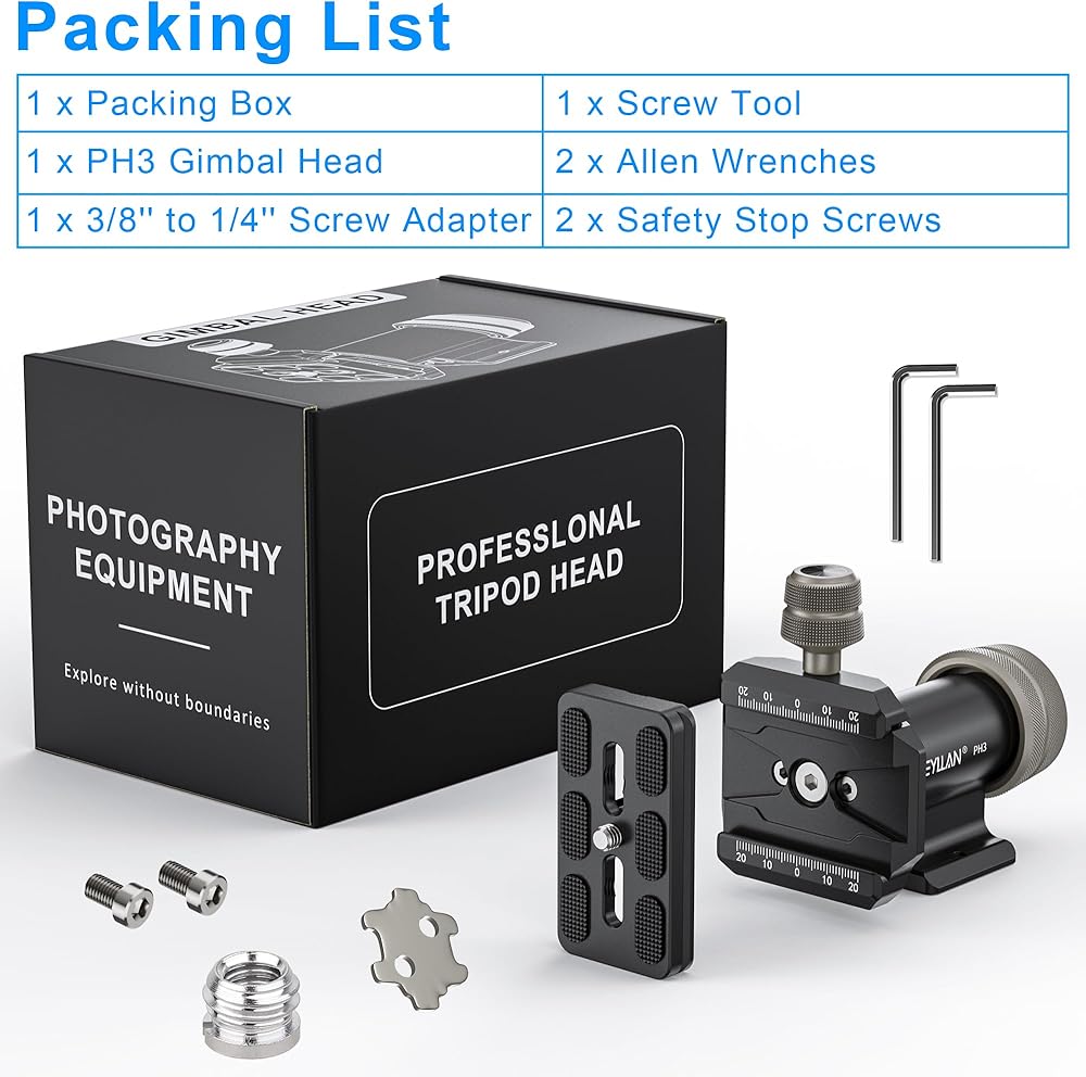 • WEYLLAN PH3 MonoGimbal Head is made of premium aluminum alloy, CNC manufacturing process makes it more sturdy and durable. PH3 head adopts a lightweight design, the net weight is only 0.68lbs/310g and max load 22lbs/10kg.
