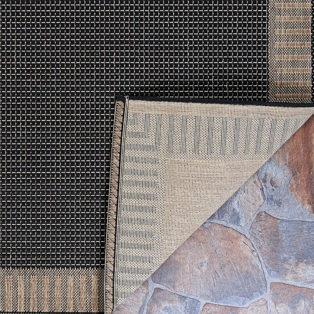 Don't Be Fooled. Every outdoor rug is 100% polypropylene… on the surface. Most outdoor rugs use Jute beneath the surface to hold their rugs together. While this does allow for a faster, easier production, it is subject to dry rot, and discoloration of connecting fibers. Unlike our competition, Couristan employs a 100% polypropylene binding system to ensure a longer lasting, higher quality indoor/outdoor rug.