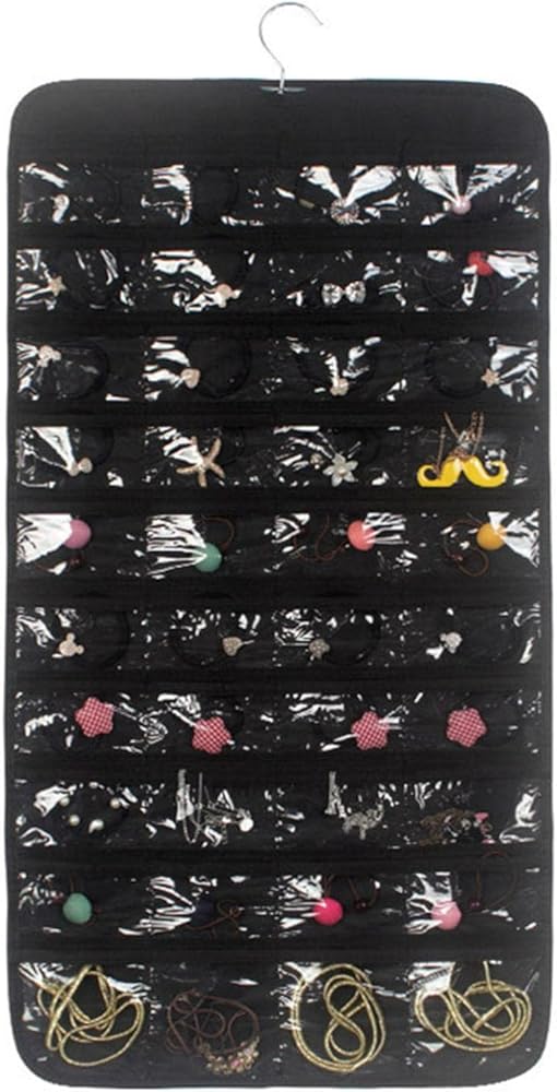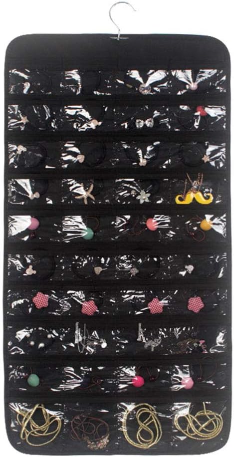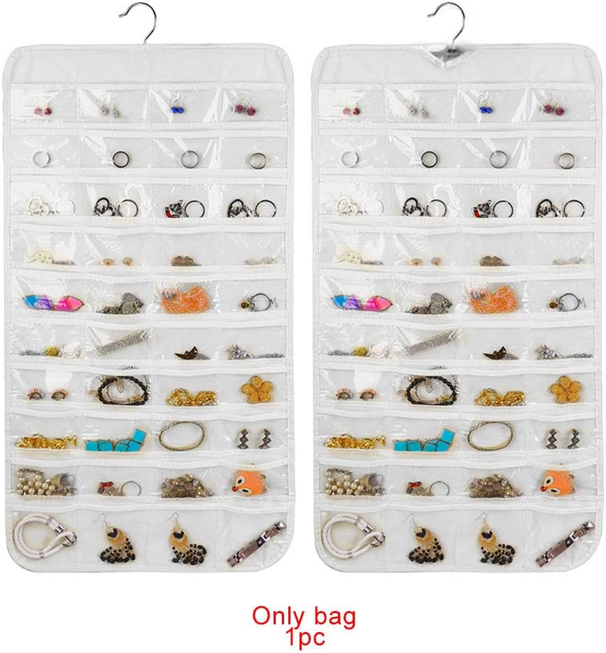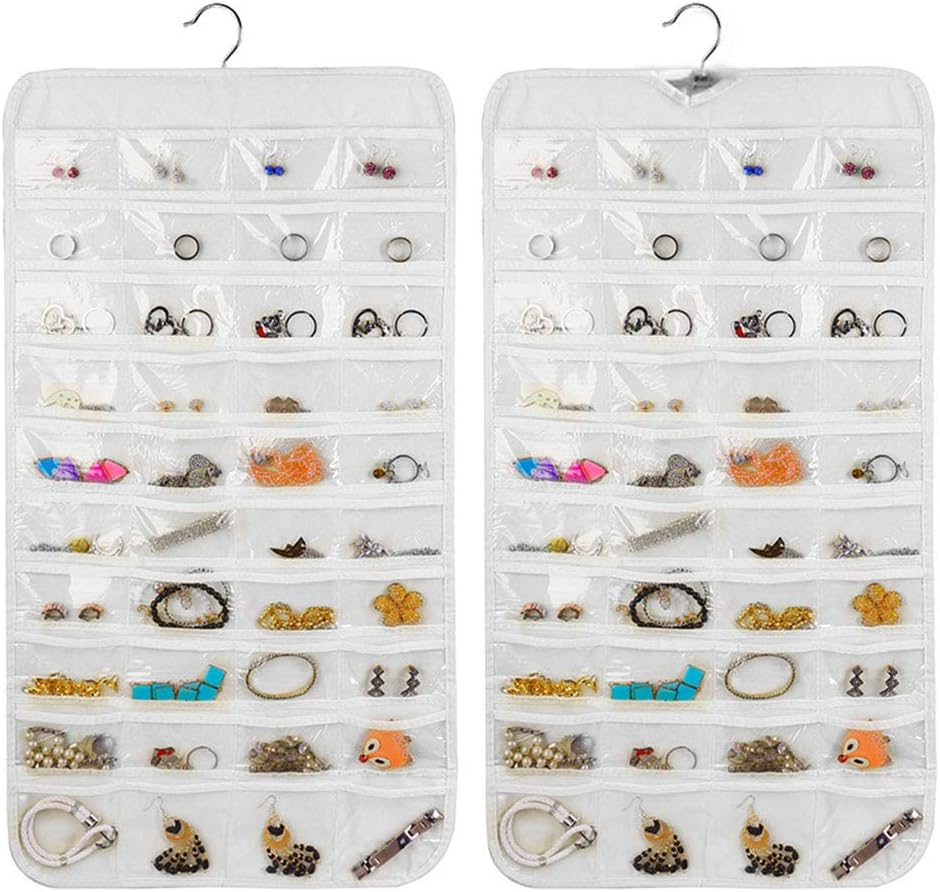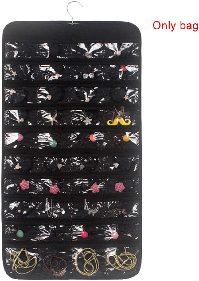 • 【Double-sided Design】Dual sided hanging jewelry organizer can storage and display a bulk of jewelry. Complete with 80 transparent pockets, this jewelry storage can hold your rings, earrings, bracelets, watches, hairpins or other accessory.