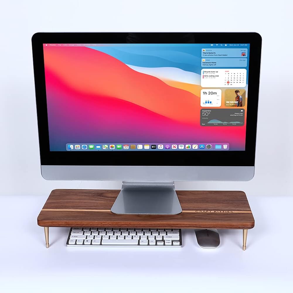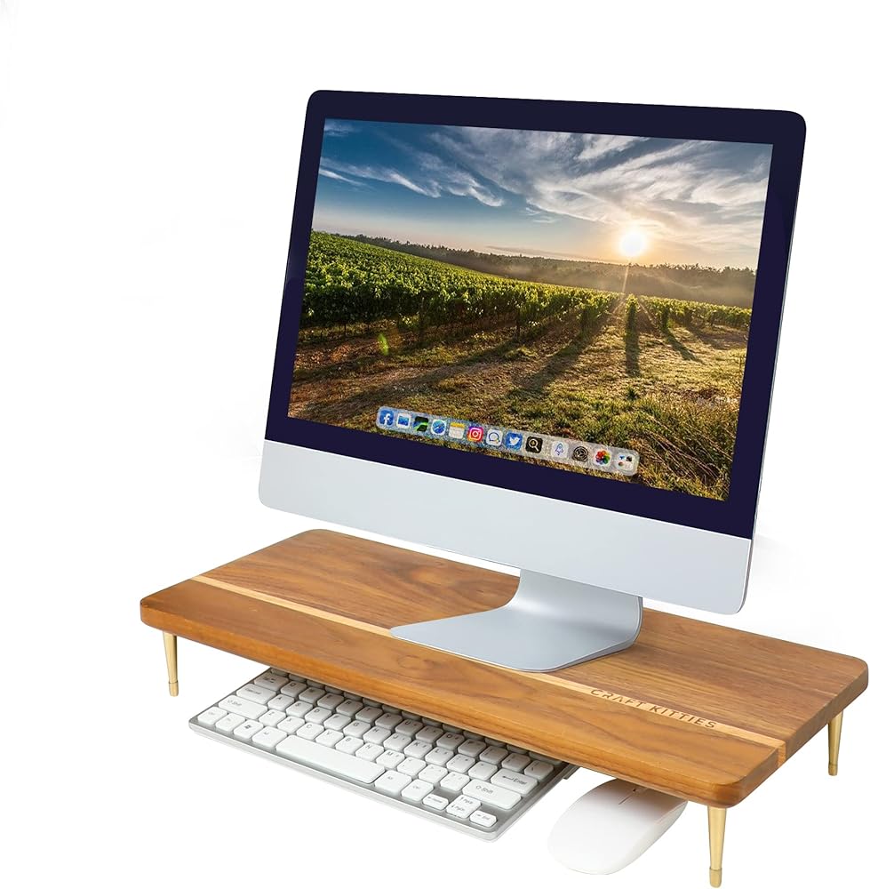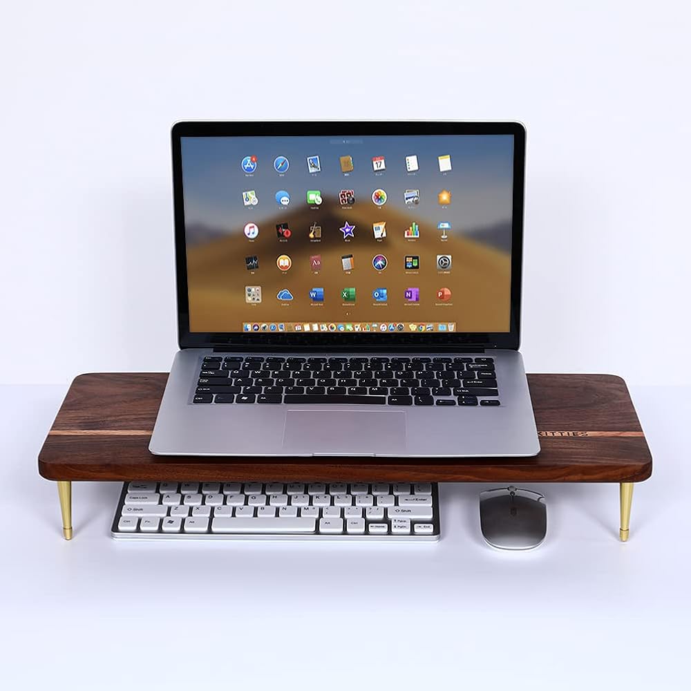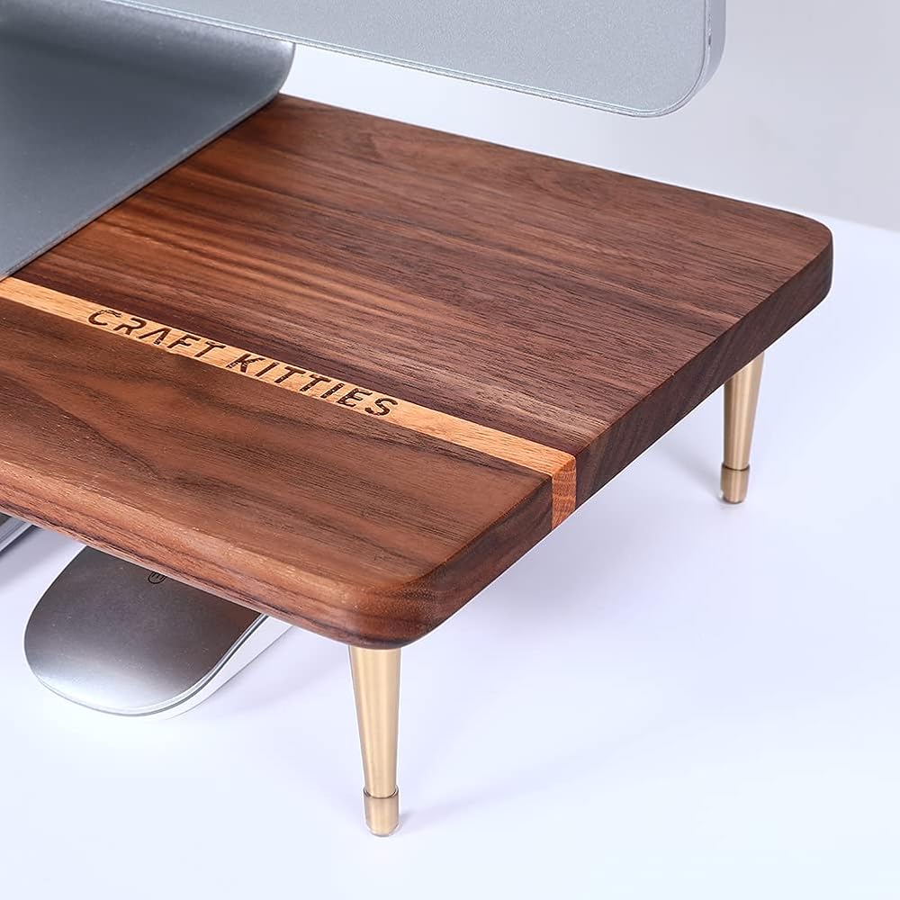 حامل شاشة الجوز الأمريكي الفاخر: حامل الكمبيوتر الخاص بنا لسطح المكتب مصنوع من خشب البلوط الأحمر الفاخر الصديق للبيئة مع خشب الجوز الأمريكي، مصنوع من الخشب بالكامل بنسبة 100%، دون أي تلوث للهواء. علاوة على ذلك، نحن نستخدم الحرفيين المحترفين لإضفاء لمسة نهائية مصقولة وطلاء بشكل رائع من أجل حياة طويلة الأمد