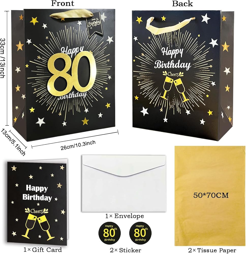 Package:This birthday gift bag set includes 1 13" gift bag + 1 gift tag + 1 greeting card + 1 envelope + 2 tissue paper, is a great 30th birthday gifts for men/women.
