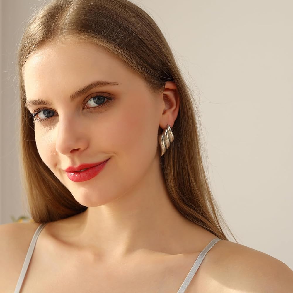 جريئة وجميلة: ارتقي بأسلوبك مع مجموعتنا المذهلة من الأقراط الذهبية المكتنزة. تتميز هذه الأقراط المصممة للمرأة العصرية بتصميم جريء وكبير، مما يجعلها مثالية لإضفاء انطباعٍ عصري في أي مناسبة.