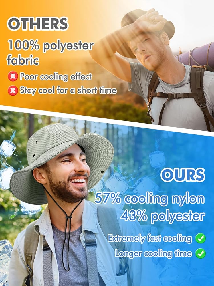 ❄Superior Quality: Crafted from durable fabric, our mens cooling sun hat maintains its shape while offering moisture-wicking and sweat-absorbing properties. Its lightweight, breathable, and skin-friendly design ensures comfort even during extended wear.