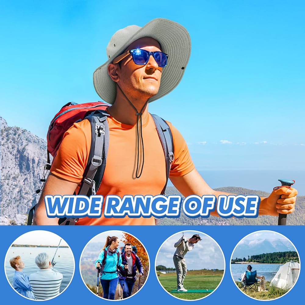 ❄Wide Range of Uses: Ideal for various outdoor activities in hot summer weather, including sports, fishing, golfing, hiking, cycling, camping, hunting, boating, gardening, beach trips, and more. The mens bucket hat provides both sun protection and cooling relief, making it suitable for diverse scenarios.